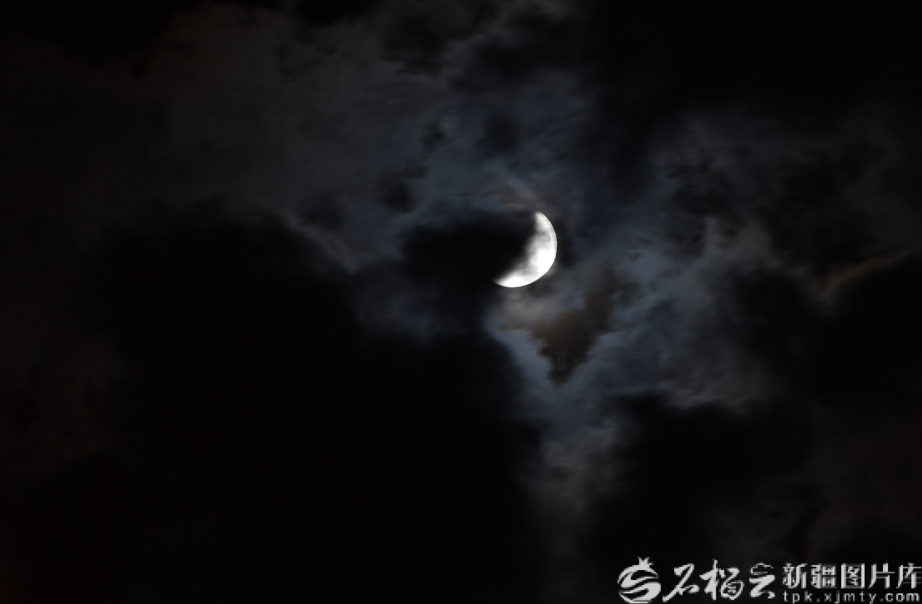 9月8日1時04分,烏魯木齊天空出現(xiàn)了云,月食進入到食既階段。