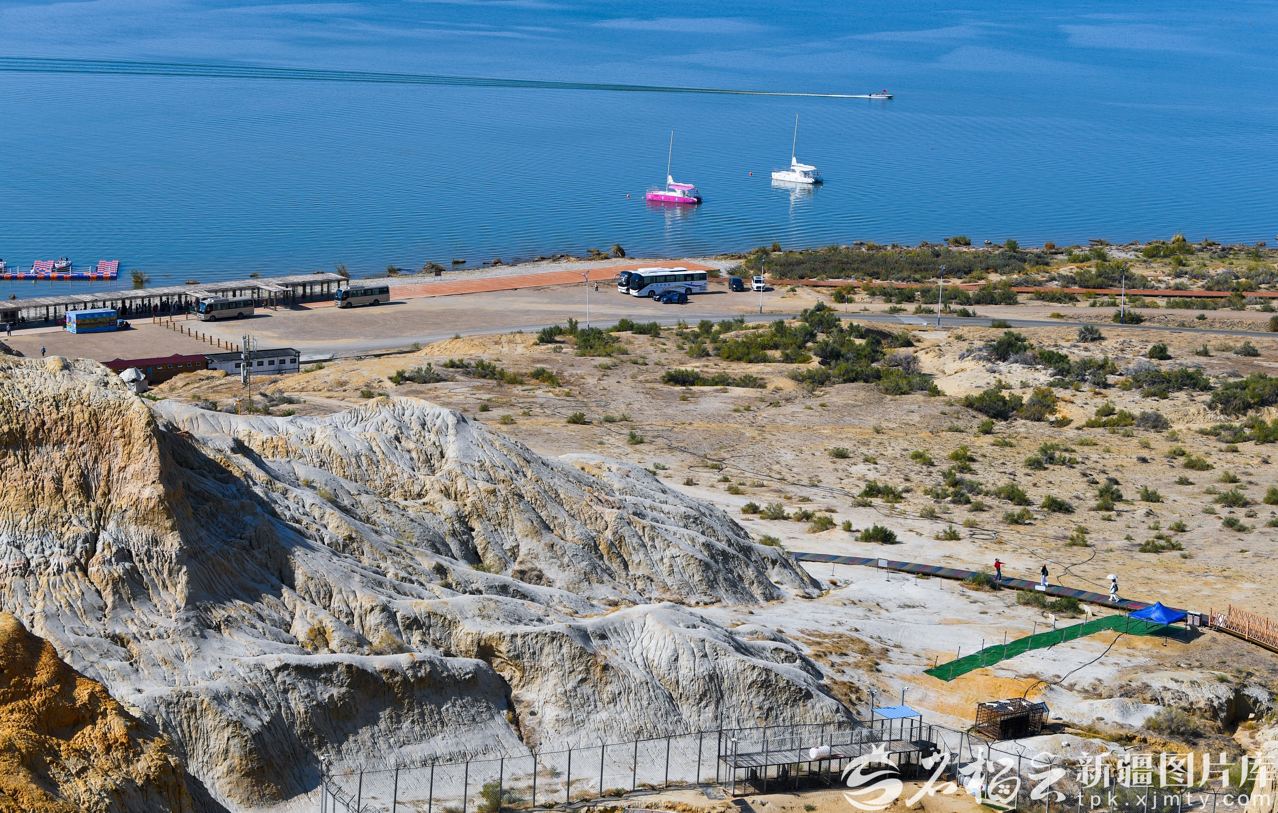 9月8日,“一半海水,一半雅丹”的烏倫古湖海上魔鬼城景區(qū)。