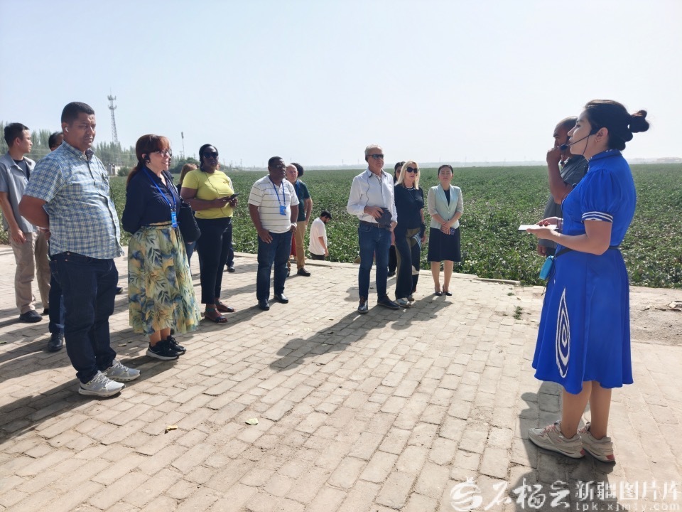 當天,在阿克蘇地區(qū)參訪的外國議員主要了解了當?shù)禺a(chǎn)業(yè)發(fā)展成果與特色民俗文化保護與傳承。在新疆果業(yè)集團阿克蘇基地公司展廳,他們詳細了解公司農(nóng)產(chǎn)品收購、加工、倉儲的情況以及阿克蘇農(nóng)貿(mào)批發(fā)市場的運營情況。在阿瓦提縣拜什艾日克鎮(zhèn)庫木奧依拉村棉田,外國議員們實地察看棉花生長狀況,觀看植保無人機飛防作業(yè)。當?shù)弥陆藁óa(chǎn)業(yè)已實現(xiàn)高度機械化、智能化時,大家紛紛贊嘆。