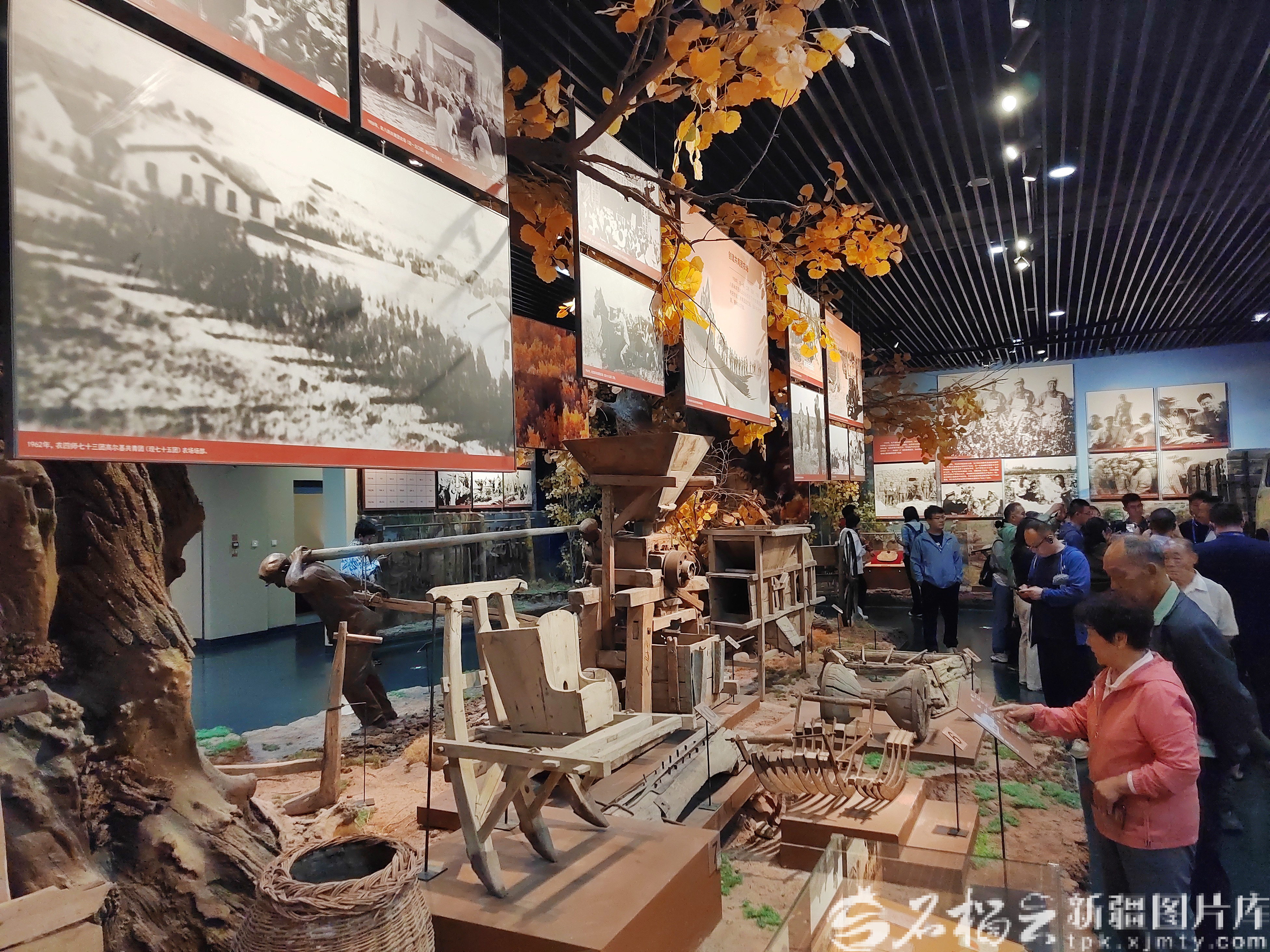 9月11日,采訪團(tuán)一行在新疆兵團(tuán)軍墾博物館參觀。
