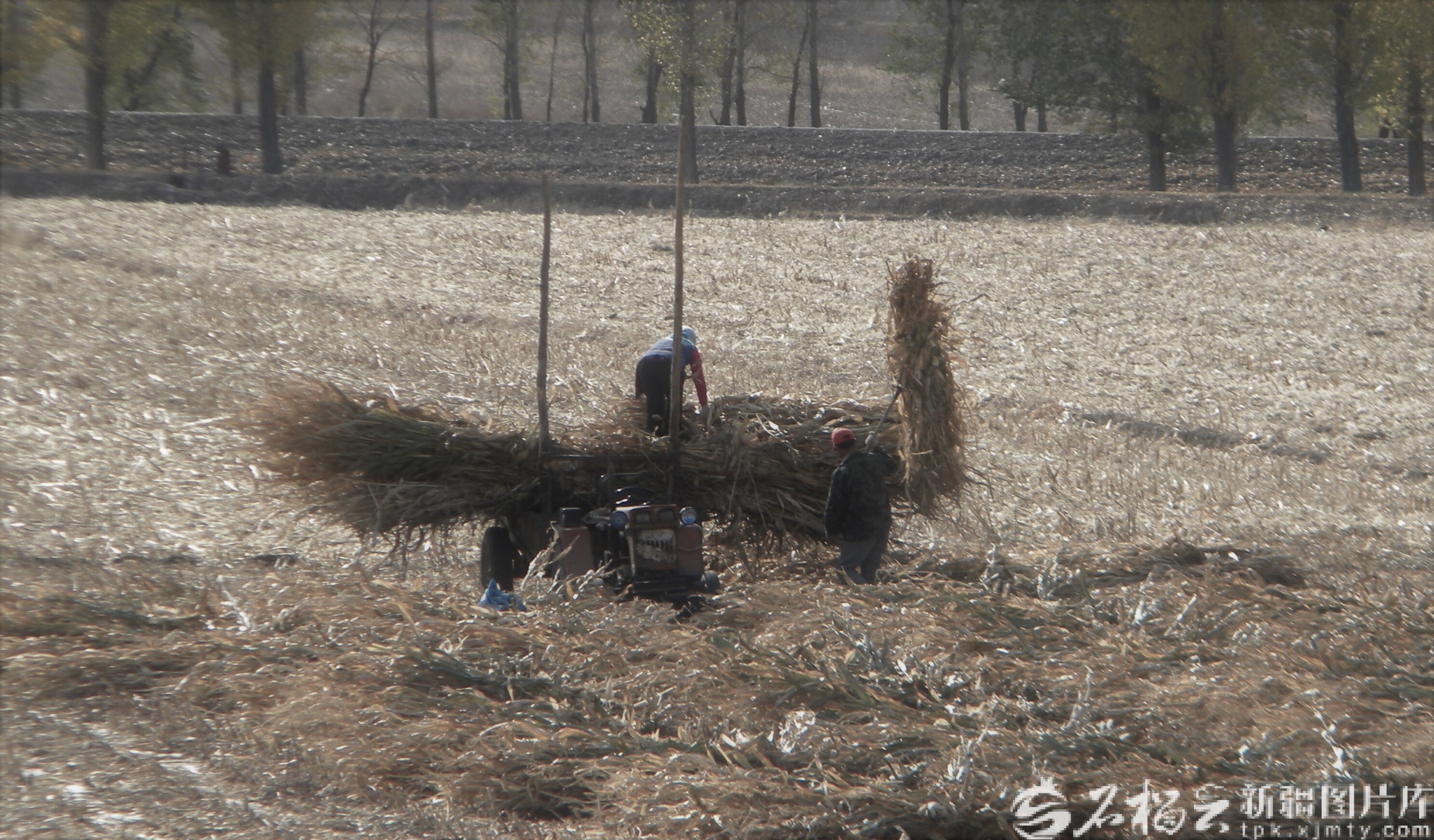 2011年10月,奇臺縣半截溝鎮(zhèn)腰站子村農(nóng)民在田間拉運玉米秸稈。采訪對象提供