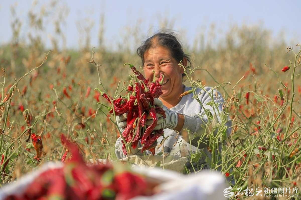 9月17日,博湖縣塔溫覺肯鄉(xiāng)村民在收獲辣椒。胡侍琦攝