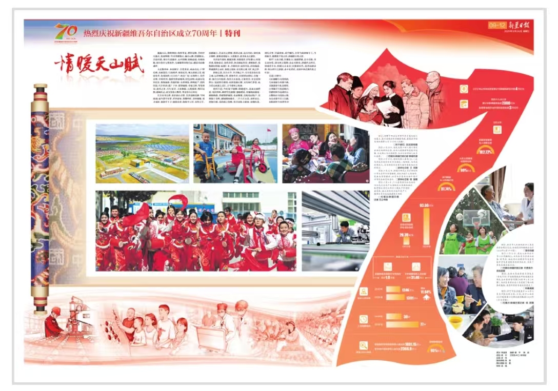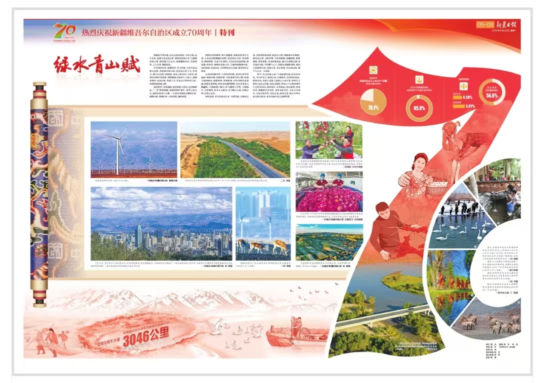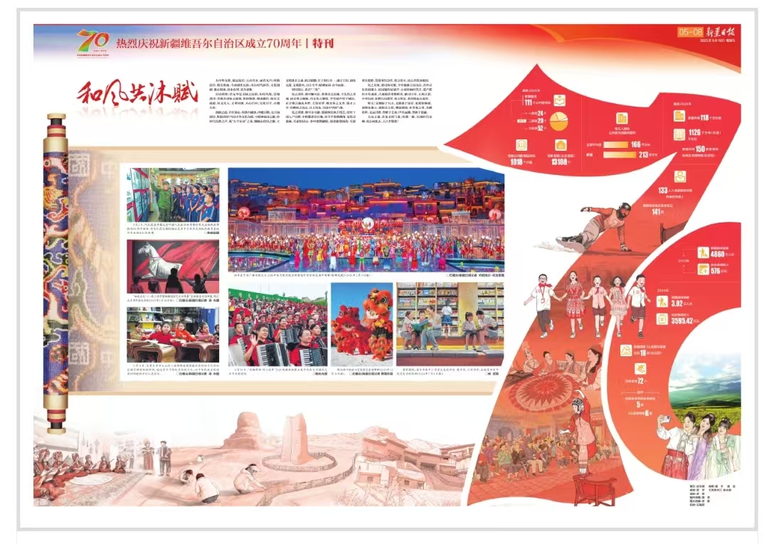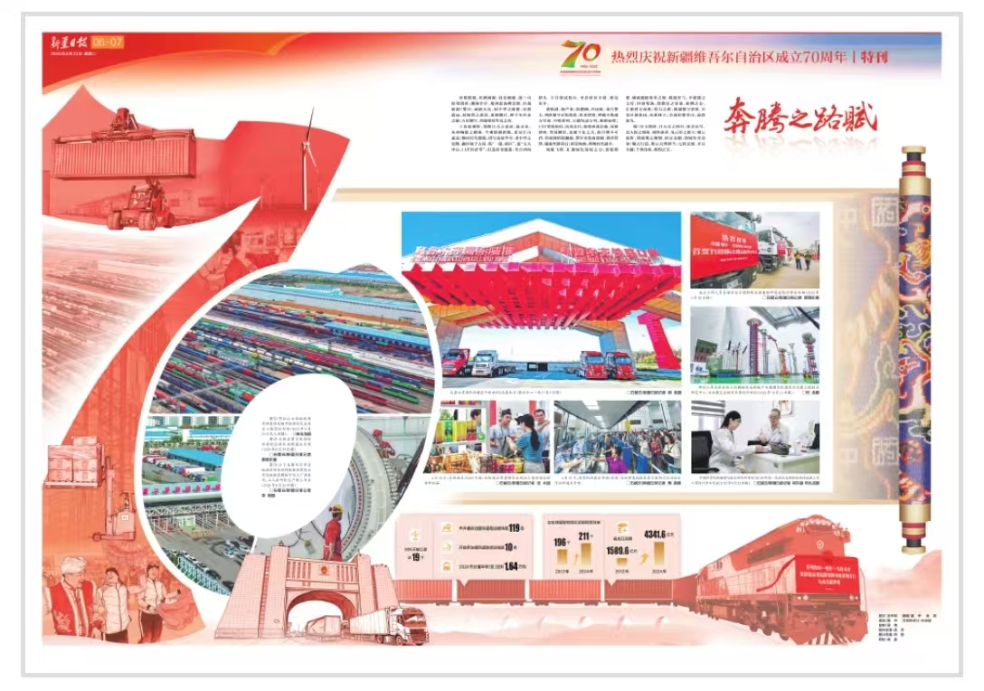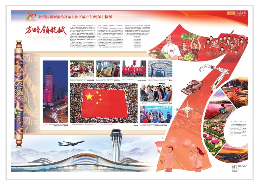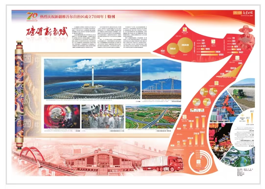 在慶祝新疆維吾爾自治區(qū)成立70周年的歷史性節(jié)點,9月17日至9月23日,新疆日報重磅推出《方略領(lǐng)航賦》《磅礴新象賦》《綠水青山賦》《奔騰之路賦》《和風(fēng)共沐賦》《同心筑夢賦》和《情暖天山賦》系列特刊,用漢賦雅韻這一承載千年的文學(xué)表達,鄭重致敬自治區(qū)70年的發(fā)展成就。
