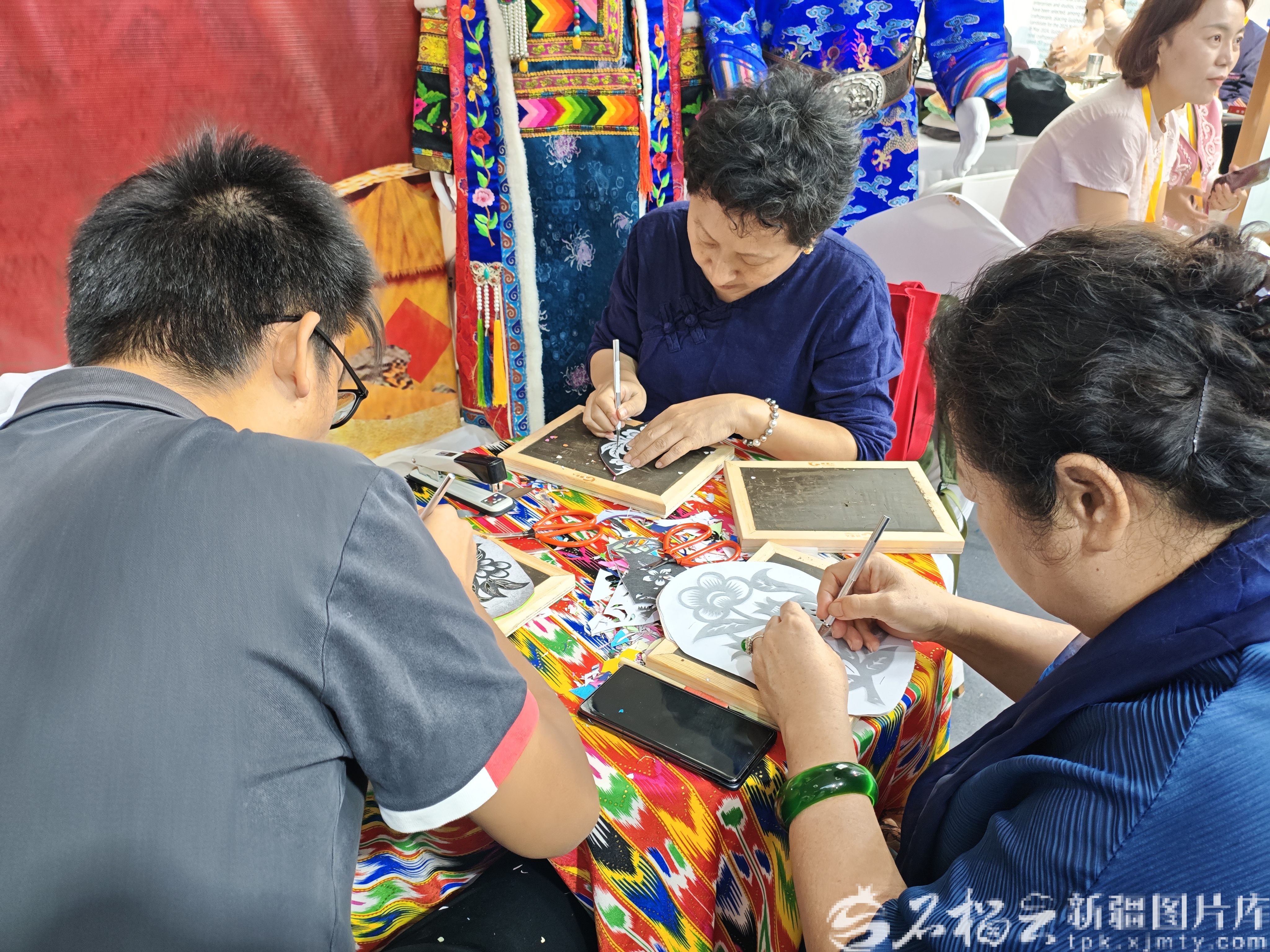 9月26日,2025年中國農民豐收節(jié)鄉(xiāng)村工匠國際交流推介活動期間,觀眾在新疆展區(qū)體驗民族剪紙技藝。天山網-新疆日報記者 劉毅攝