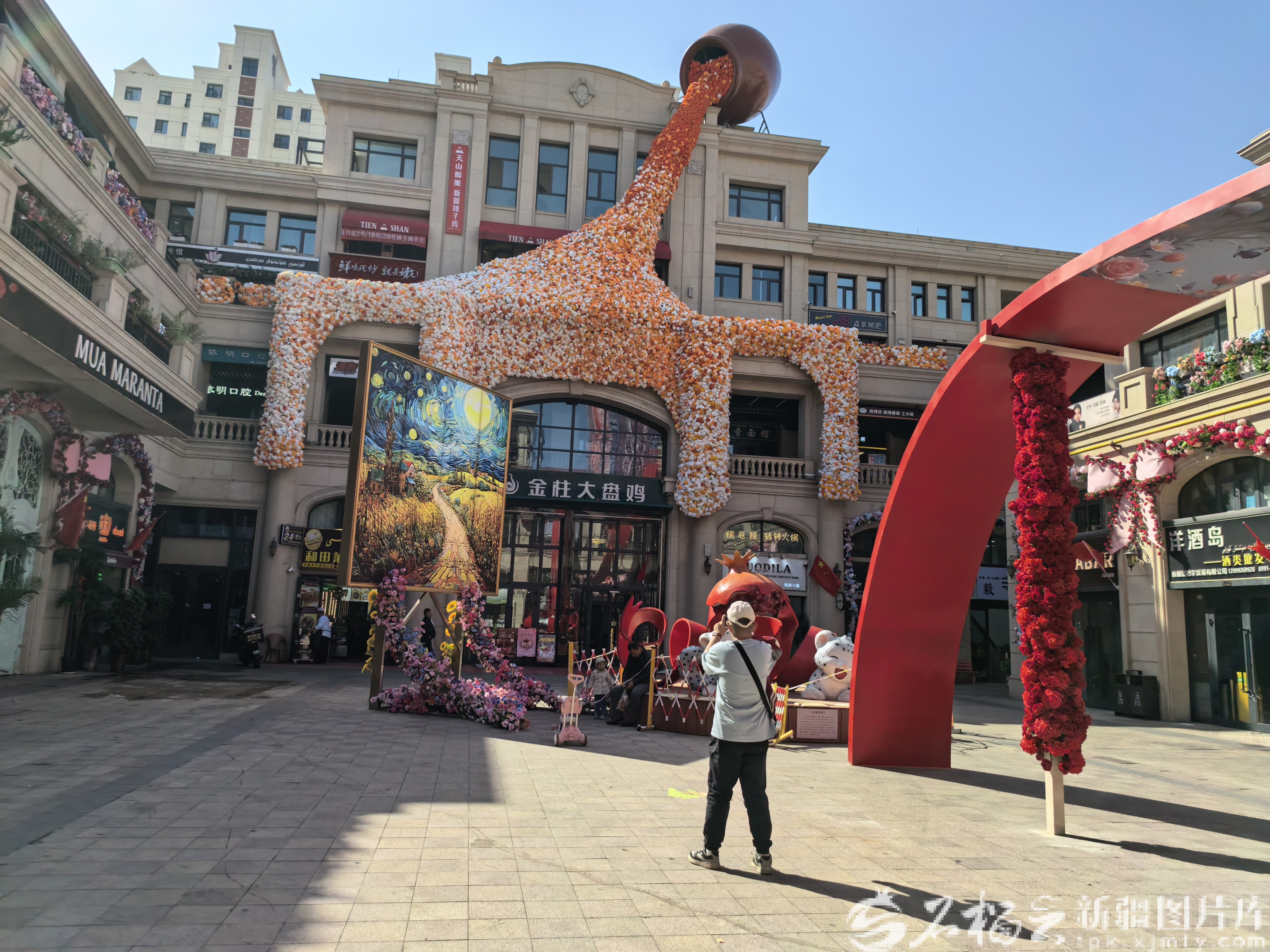 10月3日,烏魯木齊天山區(qū)富麗灣廣場(chǎng)吸引游客打卡。代東華 攝