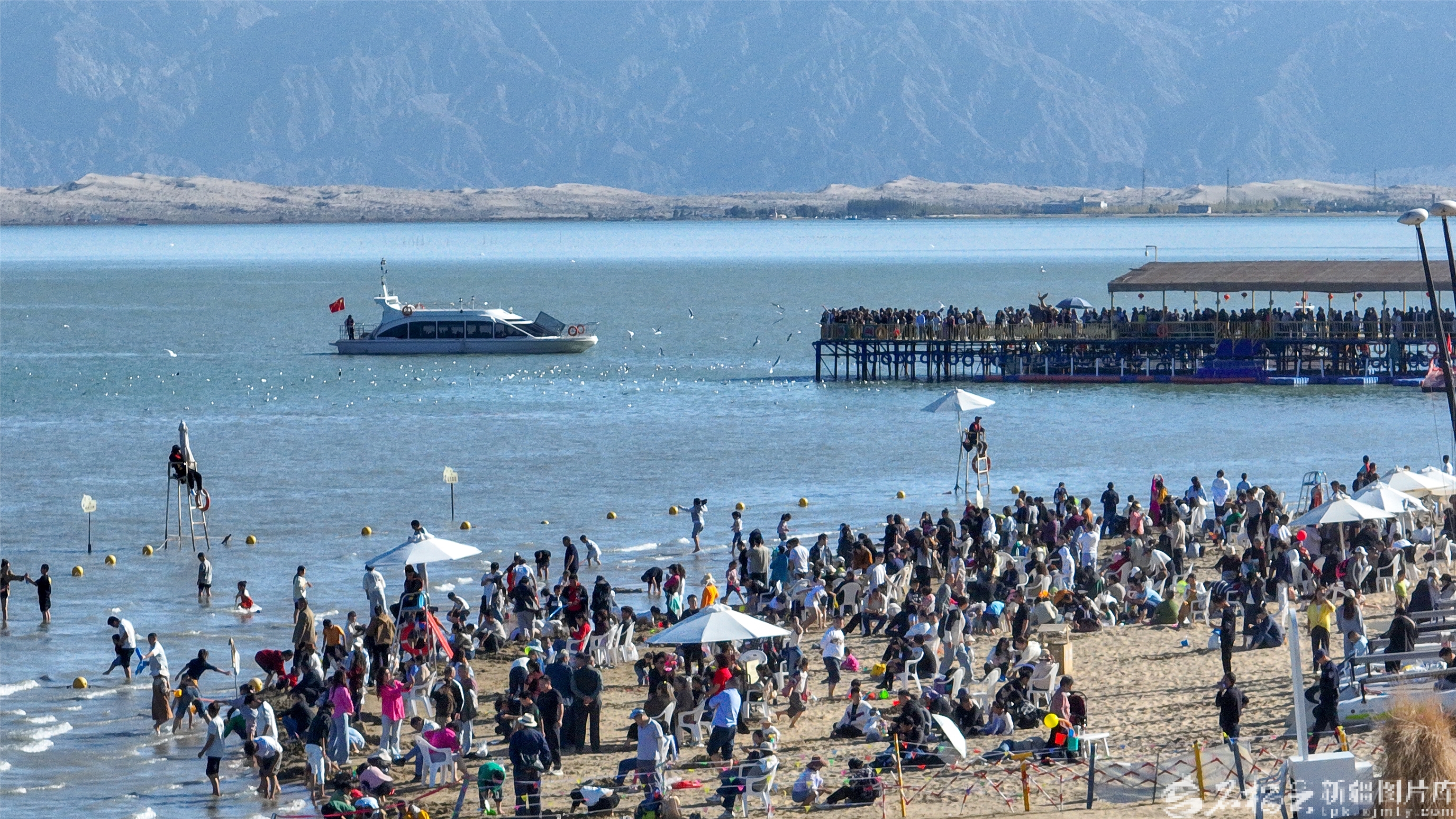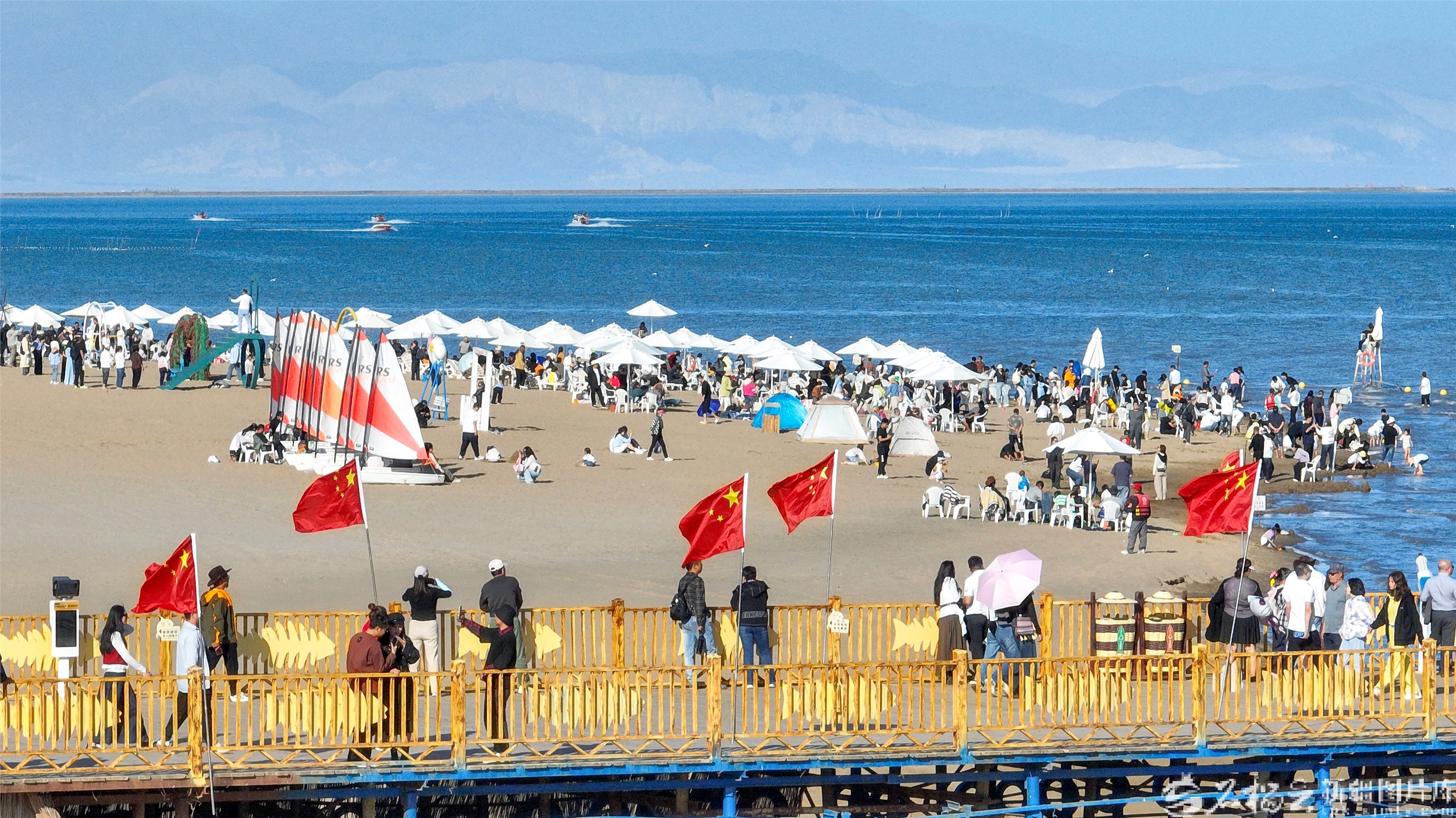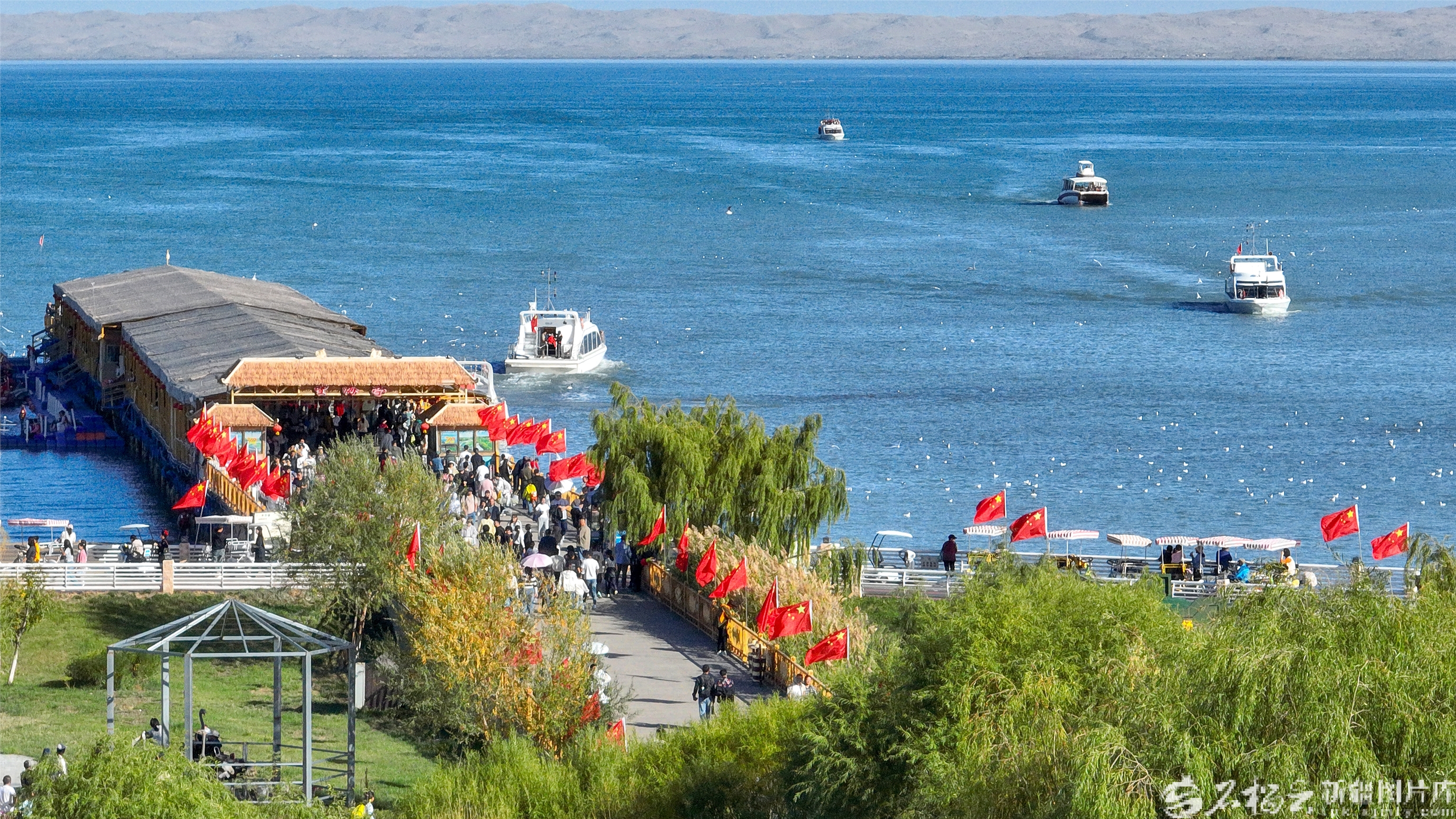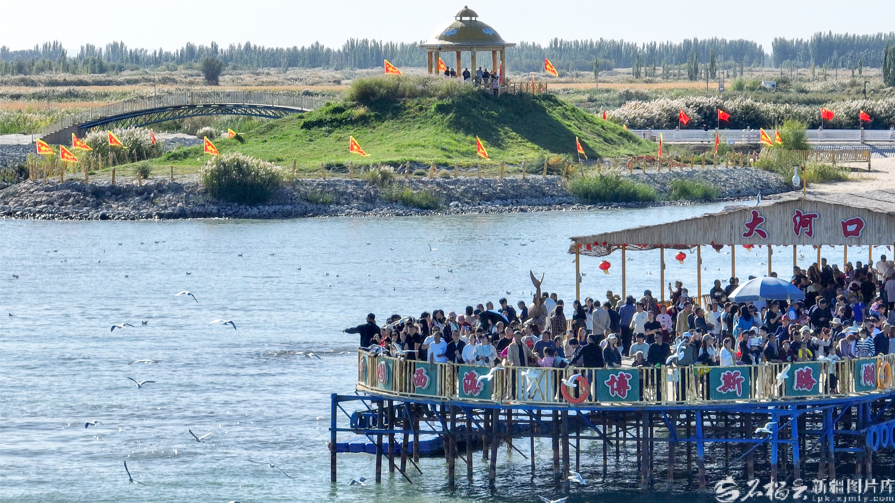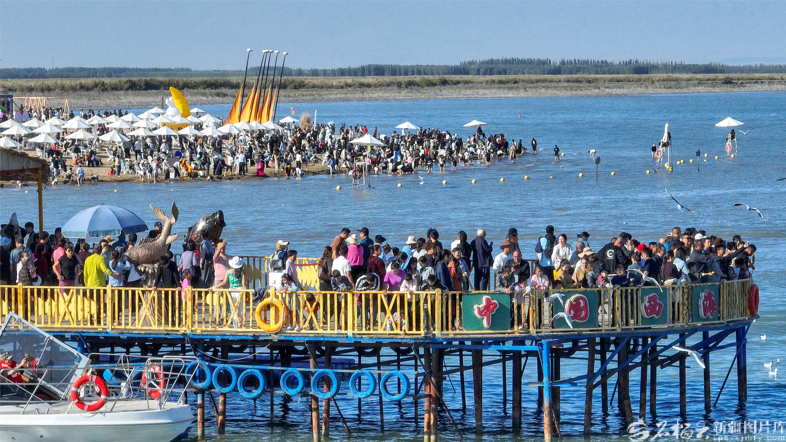 10月4日,游客在博湖縣境內(nèi)的博斯騰湖大河口景區(qū)體驗娛樂項目。國慶中秋假期,博湖縣推出“文旅+生態(tài)”“文旅+民俗”系列活動,吸引各地游客紛至沓來。年磊攝