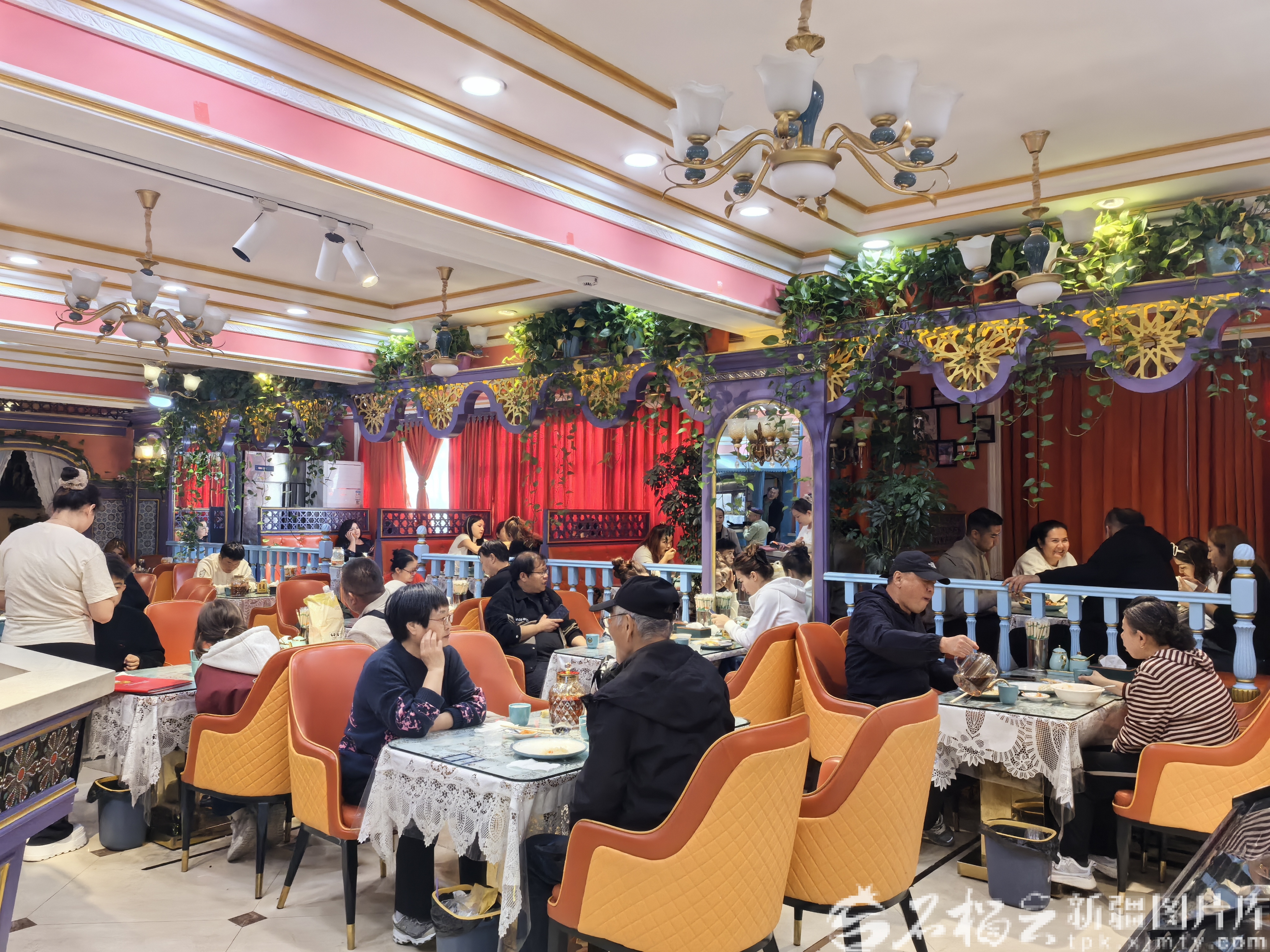 10月3日,新疆國際大巴扎一家餐廳里賓客滿座,愜意享受假期時光、品味新疆特色美食。天山網(wǎng)-新疆日報記者 趙悅攝