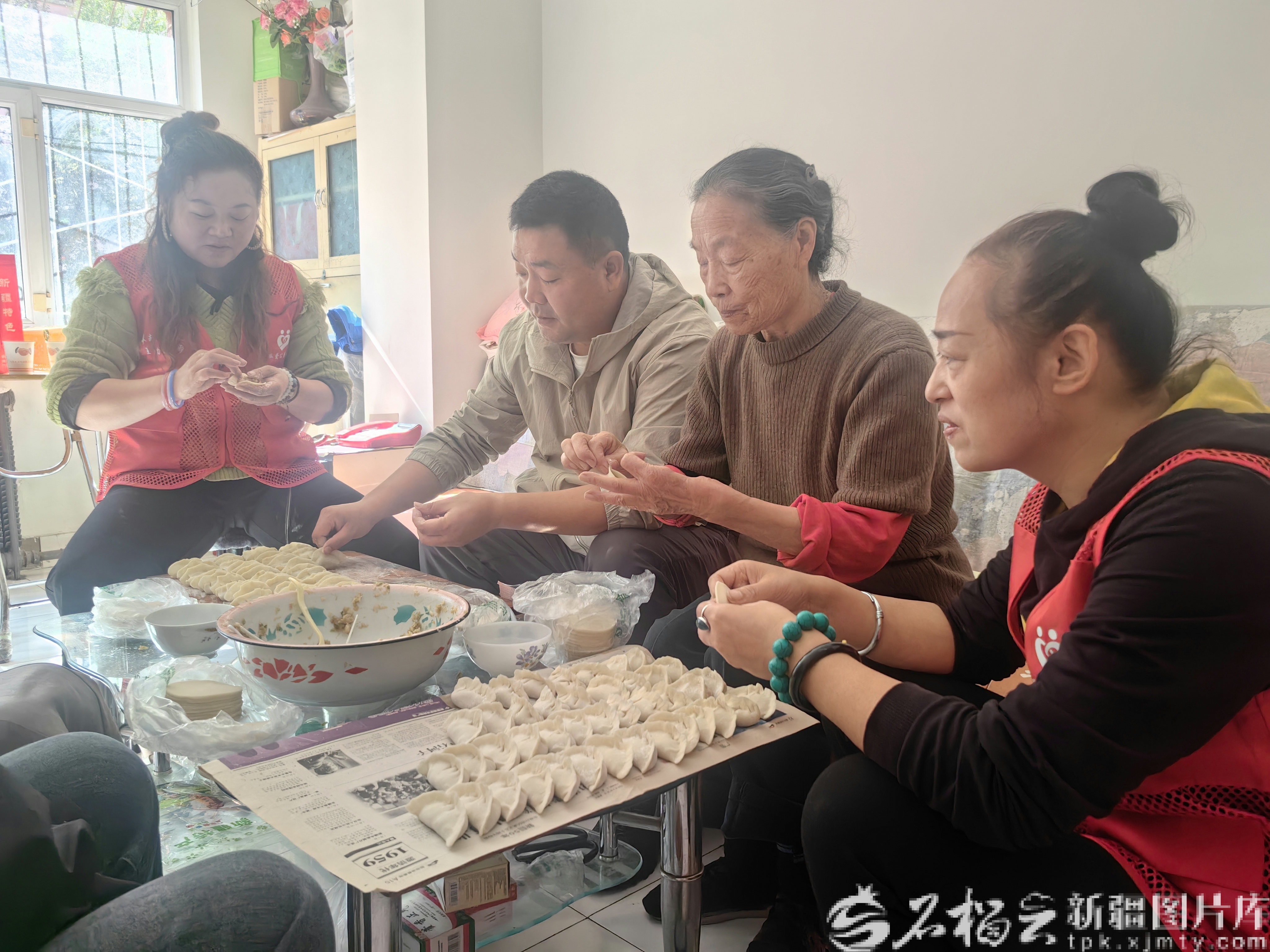 10月6日,烏魯木齊市青年志愿服務(wù)協(xié)會(huì)志愿者和老人一起包餃子。馬珉攝