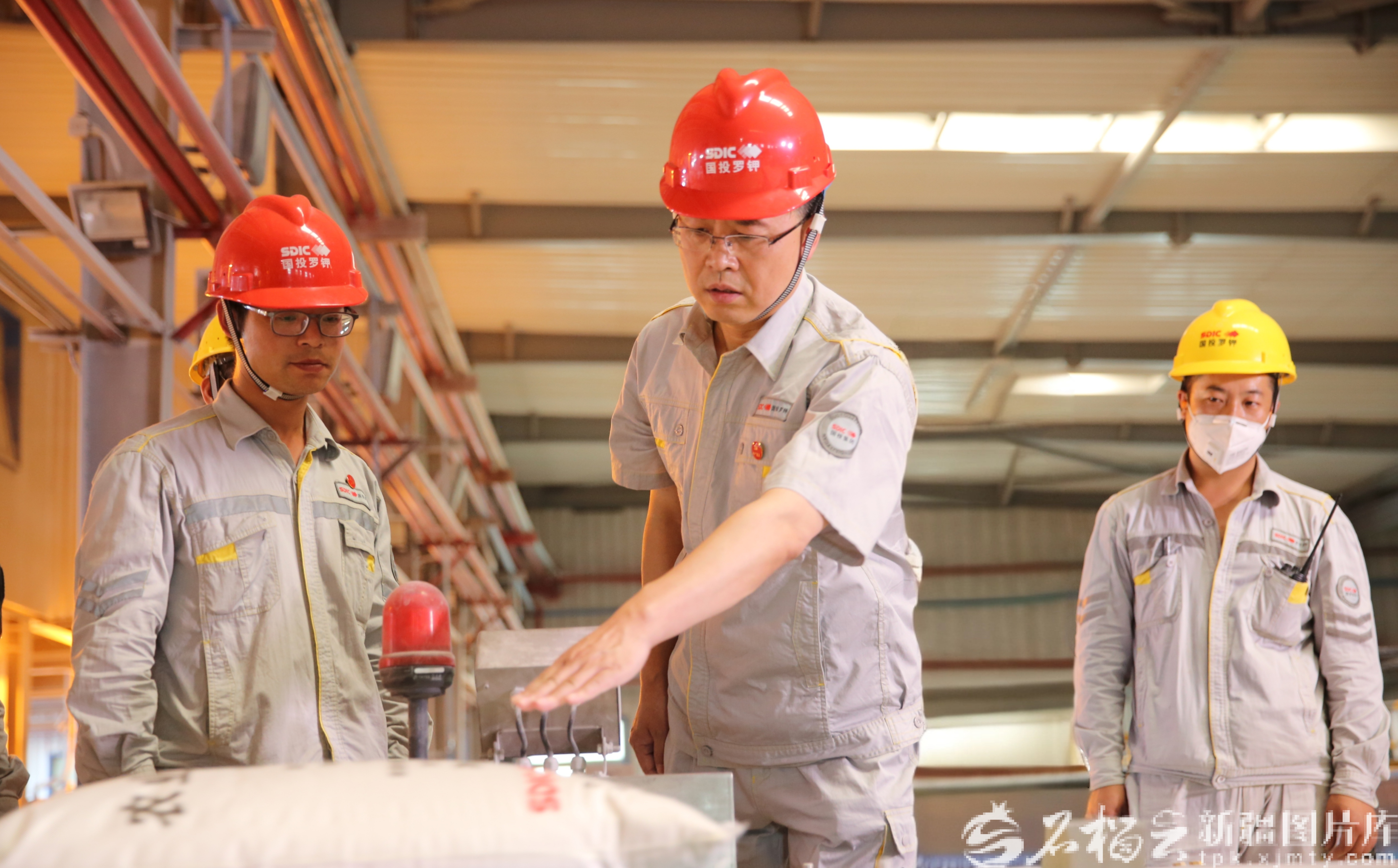 李守江在國投羅鉀羅中生產(chǎn)基地包裝車間調(diào)研。(資料圖)圖/國投羅鉀提供