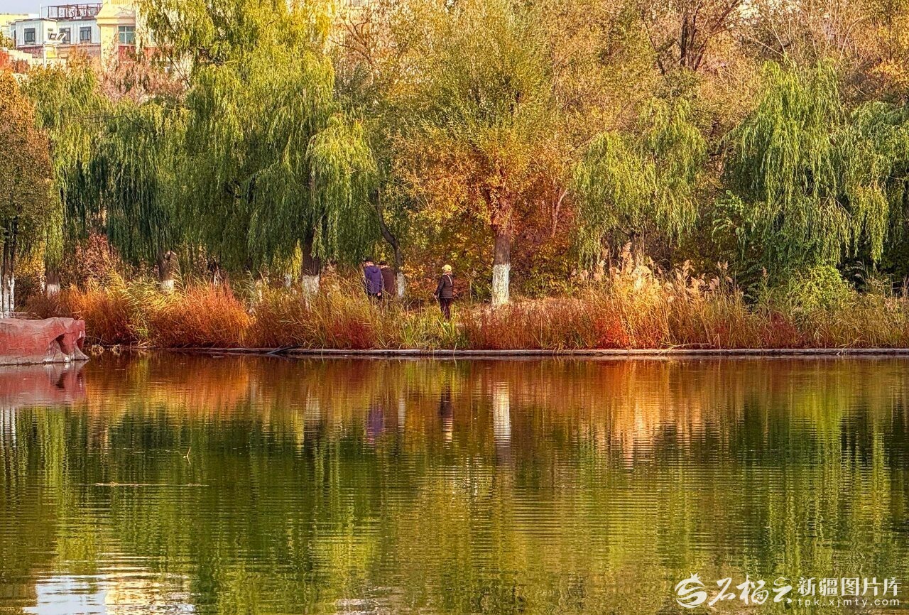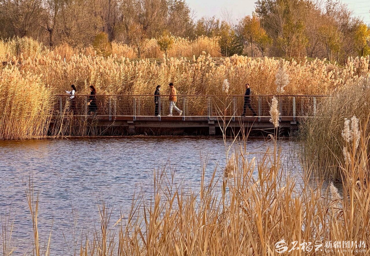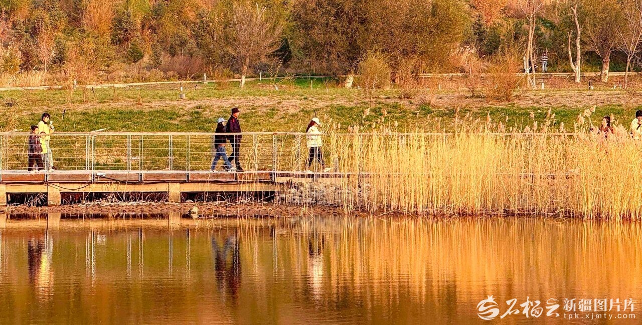 10月20日,市民在位于烏魯木齊天山區(qū)十七戶的濕地公園散步。