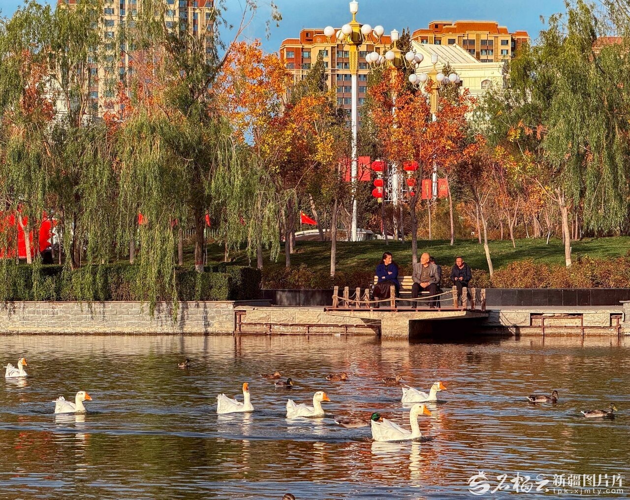 10月20日,市民在烏魯木齊天山公園觀賞水鳥,樂享美好時光。