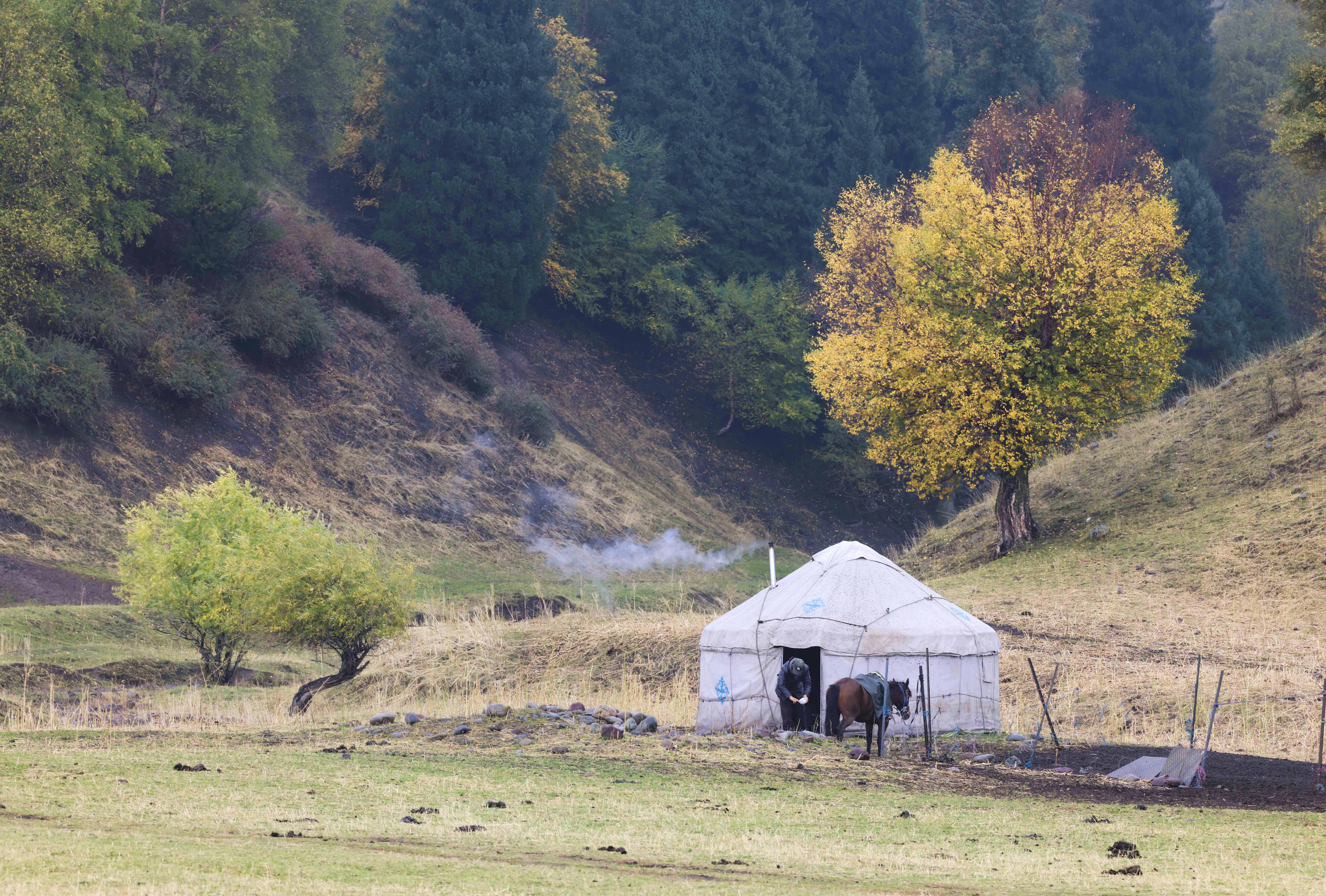 深秋時(shí)節(jié),大地褪去盛夏的濃綠,那拉提景區(qū)卻迎來(lái)了一年中最絢爛的“色彩季”,夏日單一的蔥郁已被秋日豐富的層次所取代。10月20日,景區(qū)內(nèi)河谷草原、盤(pán)龍谷道等峽谷地帶的樹(shù)木已悄然換上“金色外衣”,金黃、橙紅、淺褐等色彩交織錯(cuò)落,將山谷裝扮得五彩斑斕,與終年翠綠的松樹(shù)形成鮮明對(duì)比、交相呼應(yīng),勾勒出一幅壯闊又靈動(dòng)的秋日畫(huà)卷。