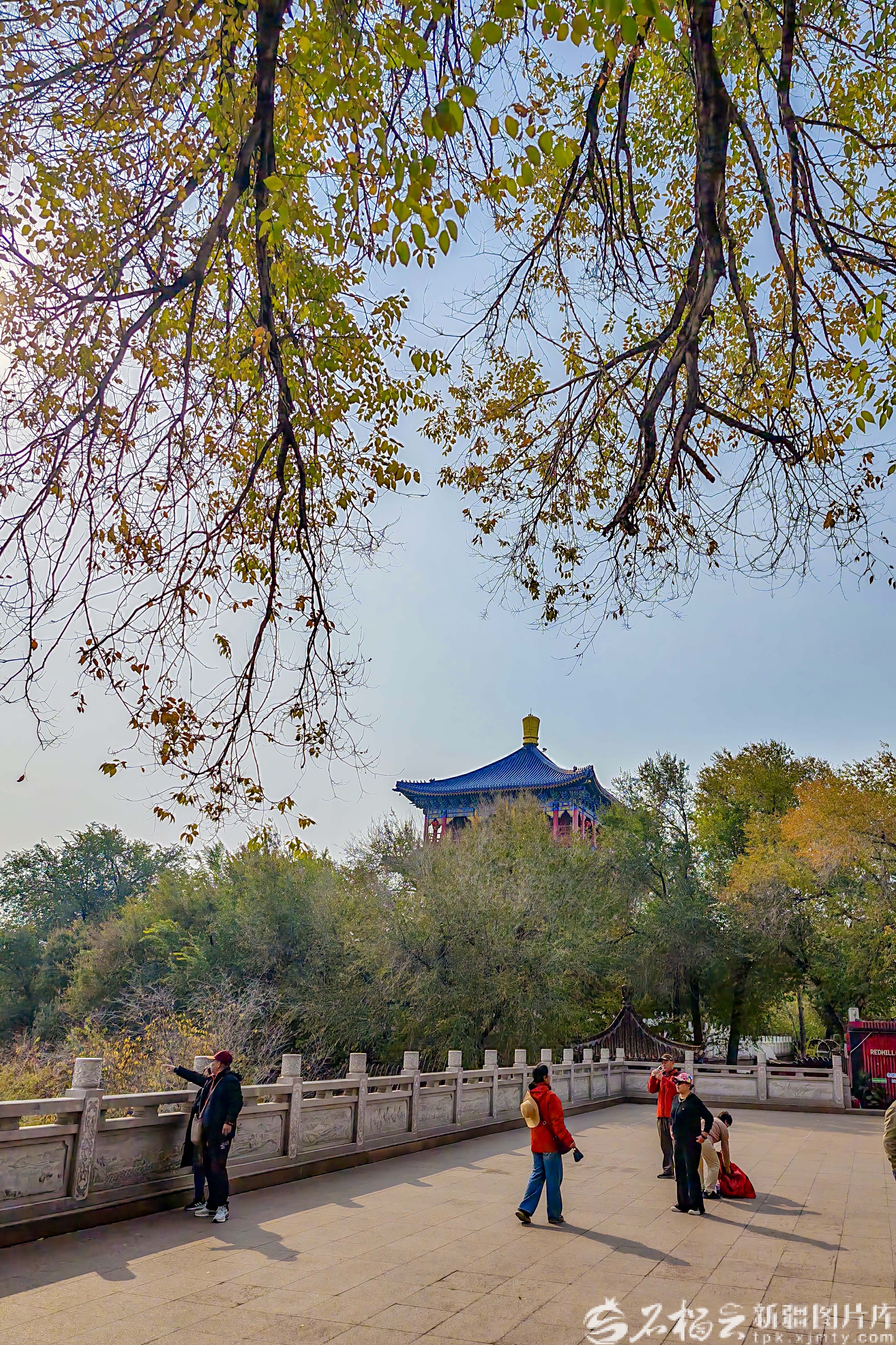 10月23日,市民在烏魯木齊市人民公園的步道上散步。