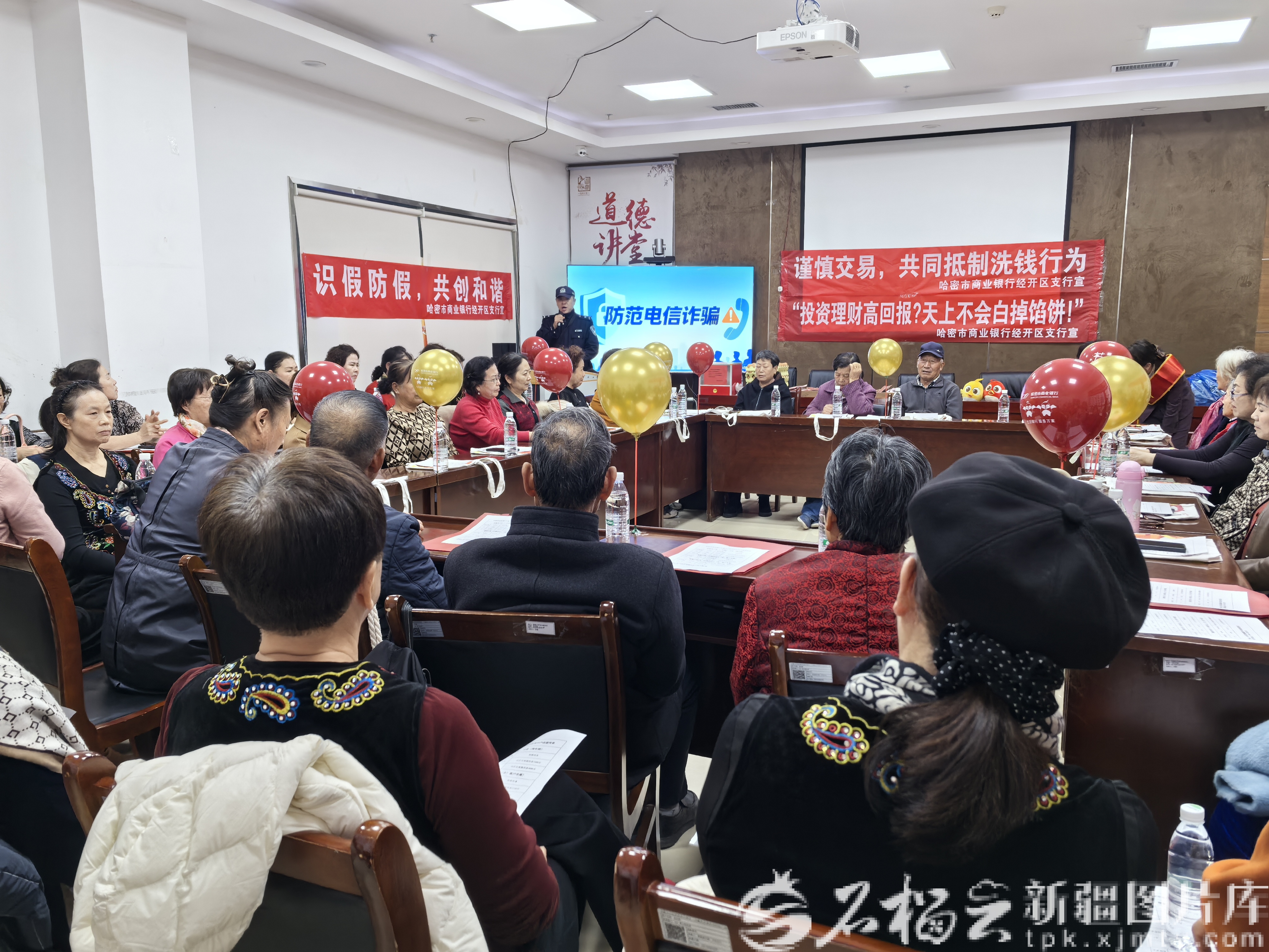 10月27日,在烏魯木齊經(jīng)開區(qū)(頭屯河區(qū))高鐵街道香山街社區(qū),一場防電信詐騙宣講正在進行。任運運攝