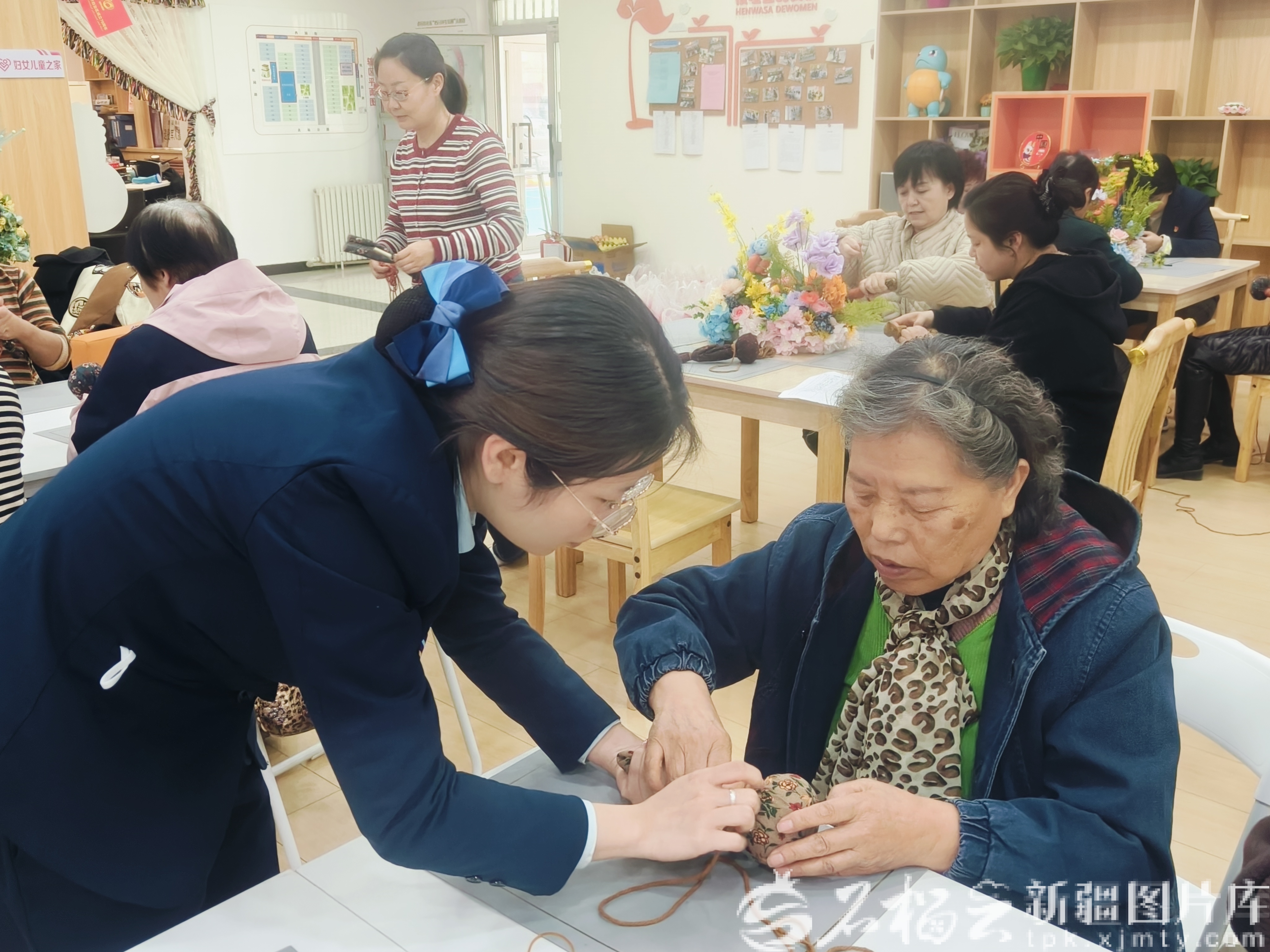 10月27日,烏魯木齊經(jīng)開區(qū)(頭屯河區(qū))火車西站街道西園街社區(qū),轄區(qū)老人正在學(xué)習(xí)手工制作。李瑞霞攝