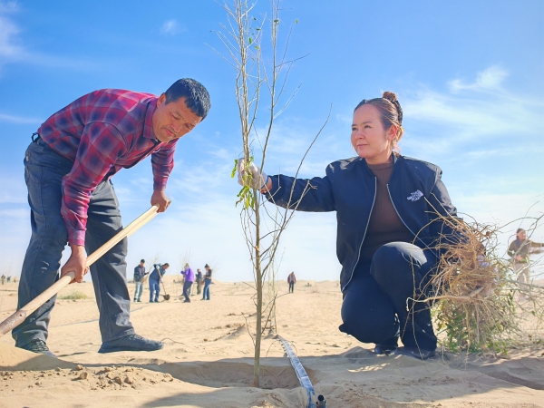 從古勒鐵日干村的秋植新綠,到達(dá)什庫勒村的冬防屏障,策勒縣達(dá)瑪溝鄉(xiāng)的黨員干部與村民們正以“功成不必在我,功成必定有我”的擔(dān)當(dāng),用雙手抵御風(fēng)沙,用堅(jiān)守守護(hù)家園。寒風(fēng)依舊,但治沙點(diǎn)上錯(cuò)落的苗木、整齊的草方格,以及忙碌的身影,共同繪就了寒冬里最溫暖的“綠色圖景”。在這里,“沙退綠進(jìn)”的希望正隨著每一鍬土、每一株苗,在冬日的大漠中頑強(qiáng)生長,為鄉(xiāng)村振興鋪就生態(tài)與發(fā)展的雙重底色。