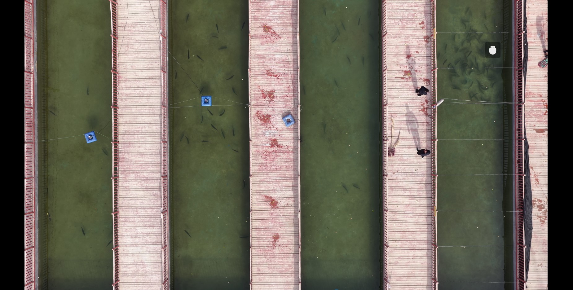 阿其克鄉(xiāng)三文魚養(yǎng)殖場魚塘。