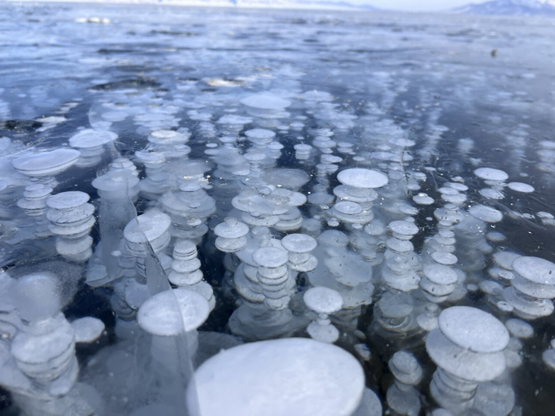 賽里木湖冰泡奇觀。 俞疆樂攝