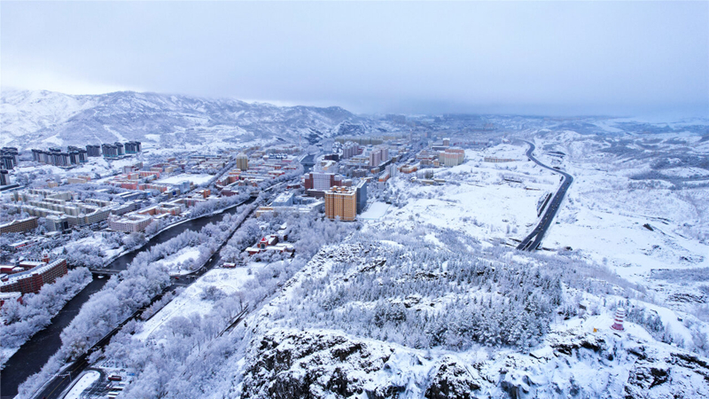 雪后的阿勒泰市銀裝素裹(無人機攝)。阿爾達克·拜斯汗攝