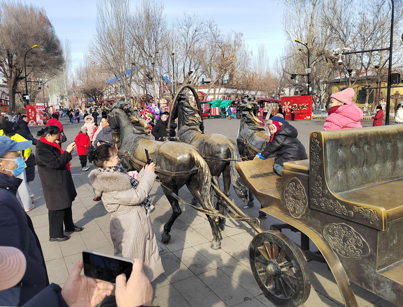 游客在伊寧市六星街歷史文化街區(qū)留影。天山網(wǎng)-新疆日報記者 鄒懿攝