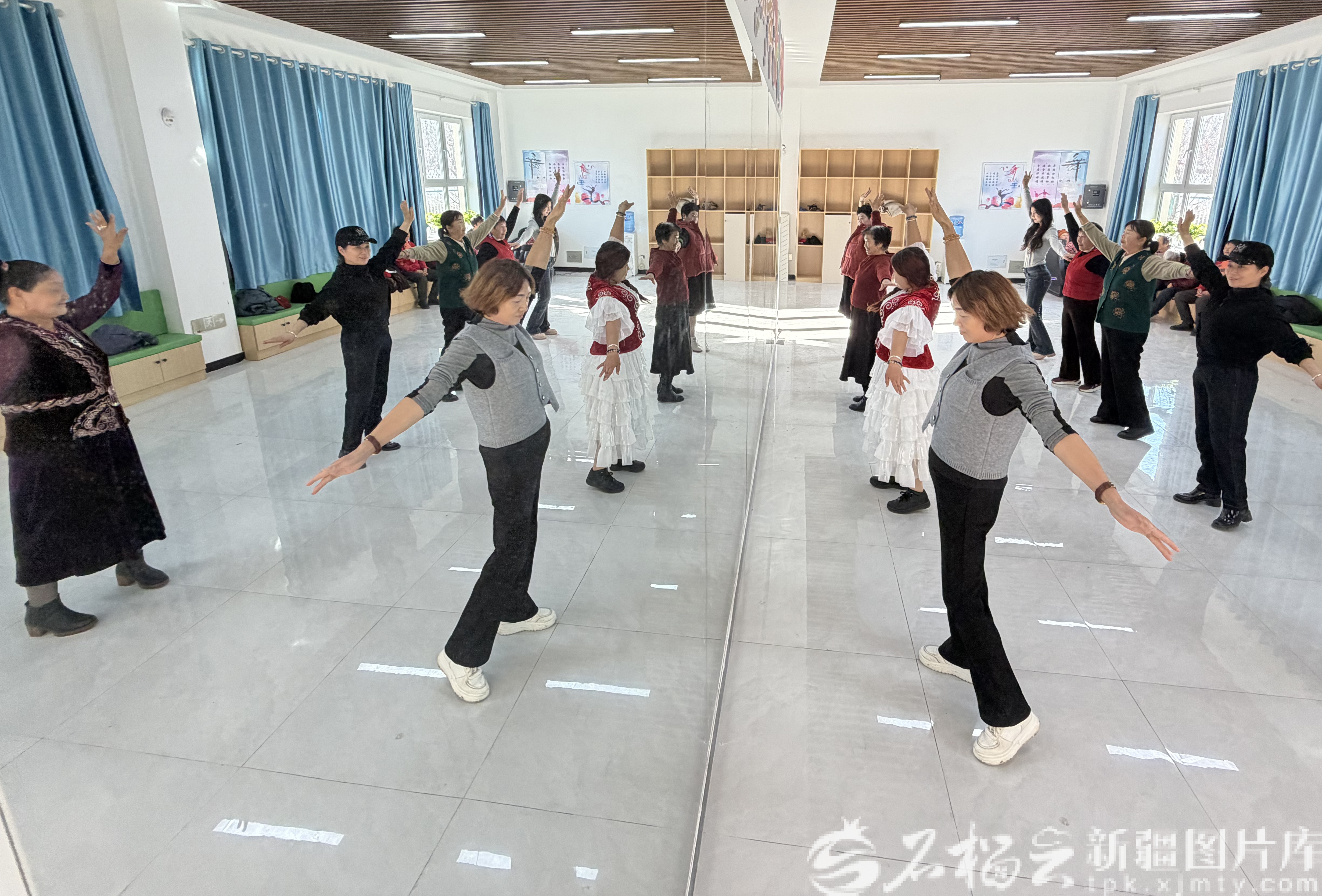 天山網(wǎng)-新疆日?qǐng)?bào)訊(記者韓亮攝影報(bào)道)“來,這個(gè)動(dòng)作手再抬高些,指尖微微翹起來才好看!”11月27日,溫泉縣克熱雅哈得村文化室內(nèi)暖意融融。村民周基云正手把手地給同村姐妹熱依汗思·熱汗巴依糾正廣場(chǎng)舞動(dòng)作,指尖起落間滿是耐心?!敖衲甏逋砦覀円羵€(gè)相,正抓緊排練呢!”周基云擦拭額頭汗水笑著說,她所在的舞蹈隊(duì)里,漢族、維吾爾族、哈薩克族、蒙古族四個(gè)民族的隊(duì)員聚在一起,把各民族的特色舞蹈動(dòng)作揉進(jìn)同一個(gè)節(jié)目。