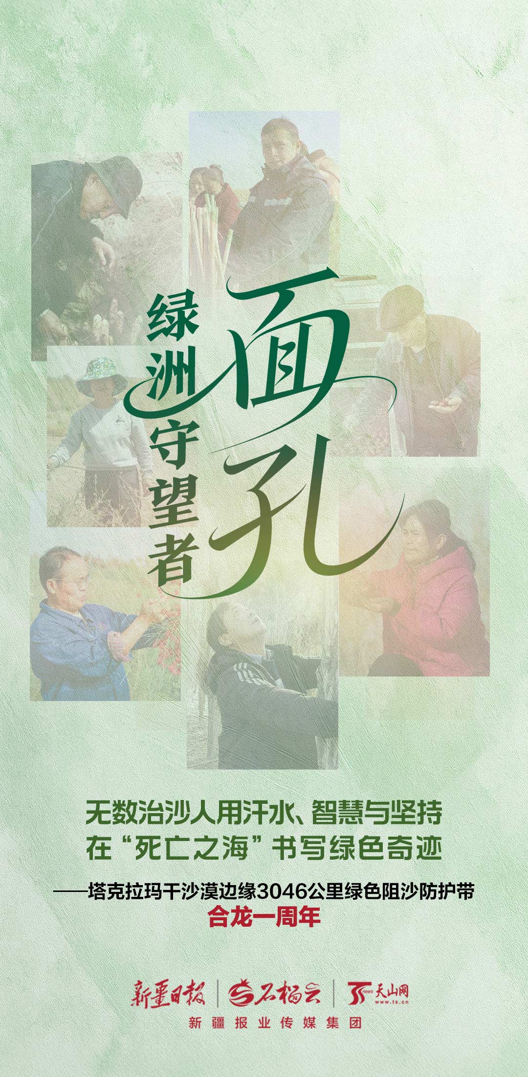 塔克拉瑪干沙漠鎖邊合龍一周年九宮格海報丨面孔·綠洲守望者