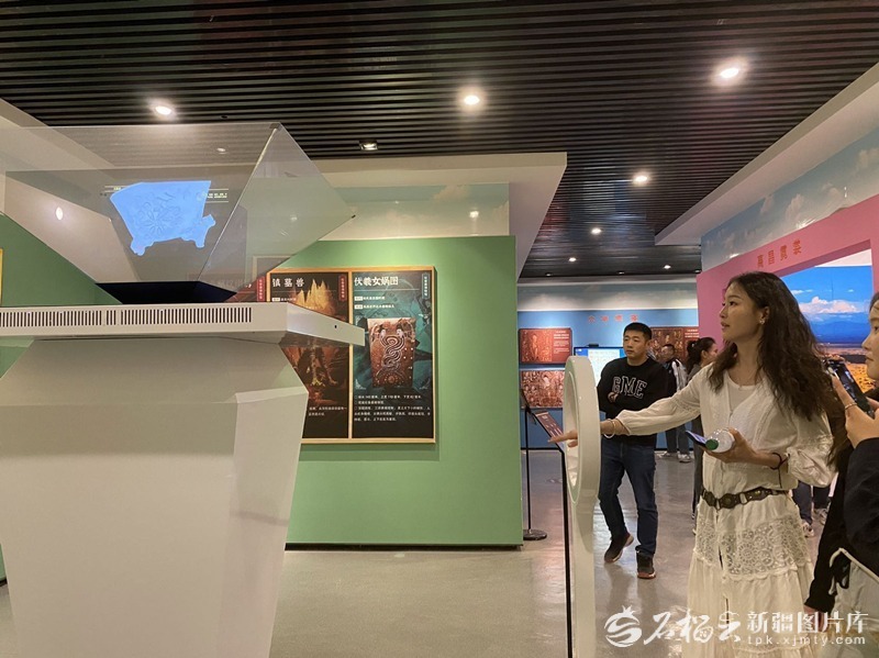 游客在吐魯番博物館文化遺產(chǎn)數(shù)字體驗(yàn)中心體驗(yàn)項(xiàng)目。天山網(wǎng)-新疆日?qǐng)?bào)記者 趙梅攝