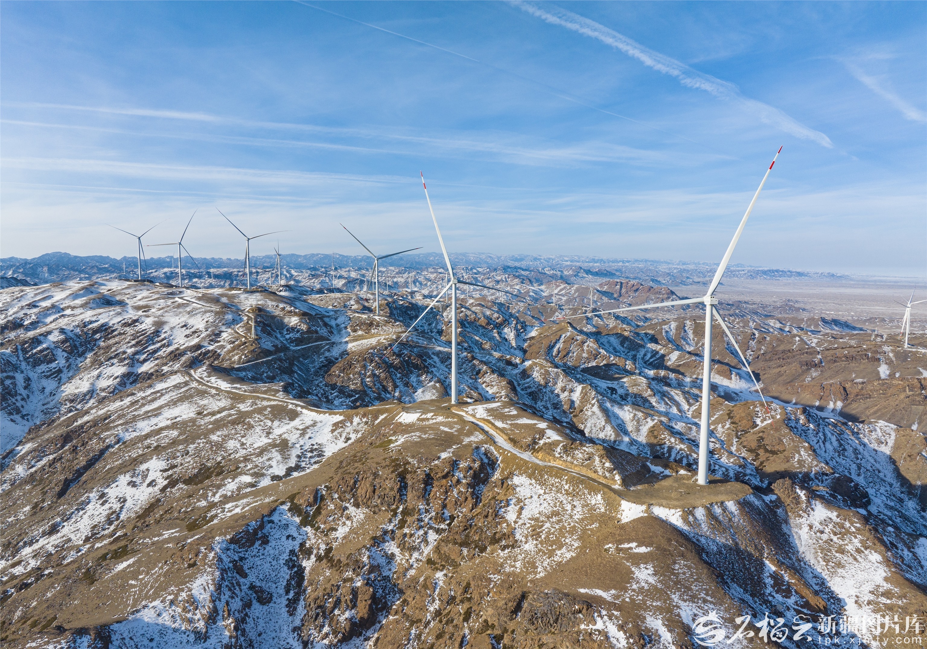 12月1日,木壘哈薩克自治縣大石頭風場上的風力發(fā)電機組迎風“起舞”。近年來,木壘大力推進新能源產(chǎn)業(yè)發(fā)展,已建成縣級千萬千瓦級新能源基地。今年,該縣實施新能源項目19個,年底前新增并網(wǎng)1000萬千瓦,將建成全疆首個縣級“雙千萬千瓦級”新能源基地。何龍攝