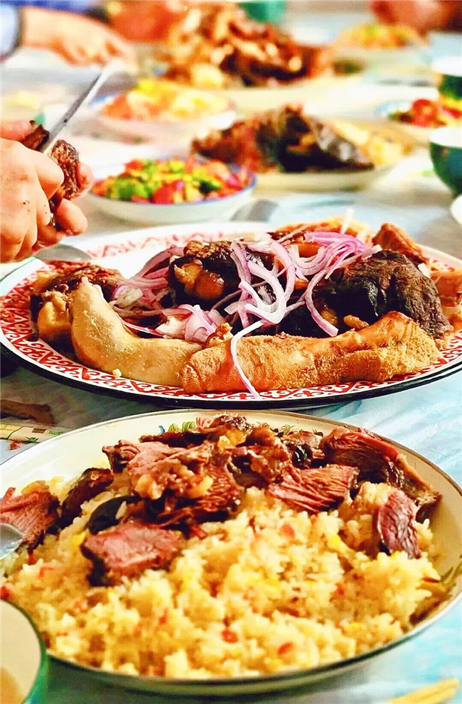 一盤肉、一壺奶茶、幾張熱馕