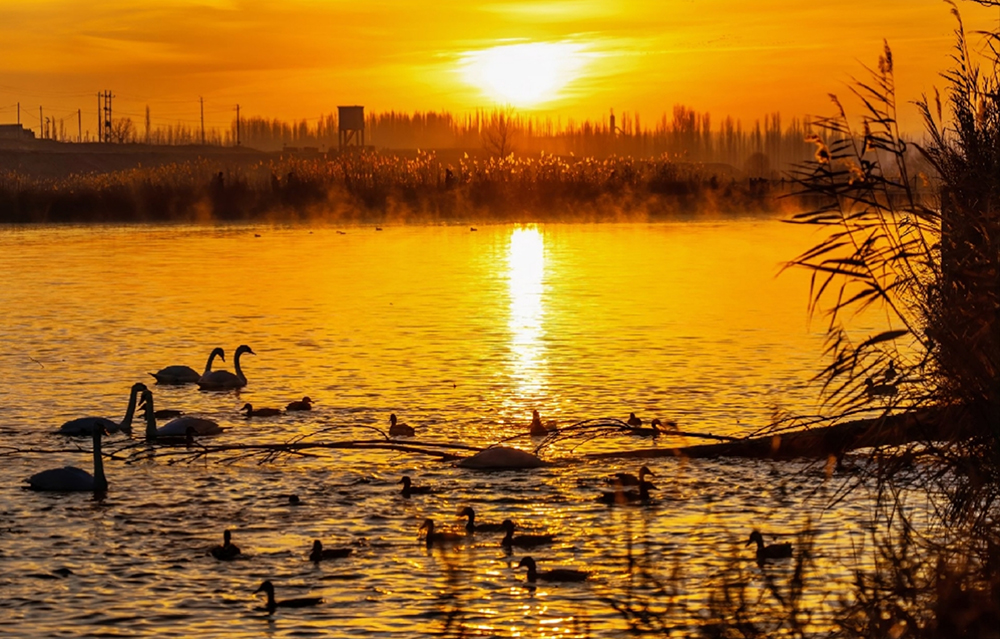 12月1日,破曉時(shí)分,第一縷曙光如輕羽般拂過(guò)天山北麓沉睡的曠野。在伊寧縣天鵝泉濕地公園,一場(chǎng)光與生命的交響,已先于黎明悄然啟幕。