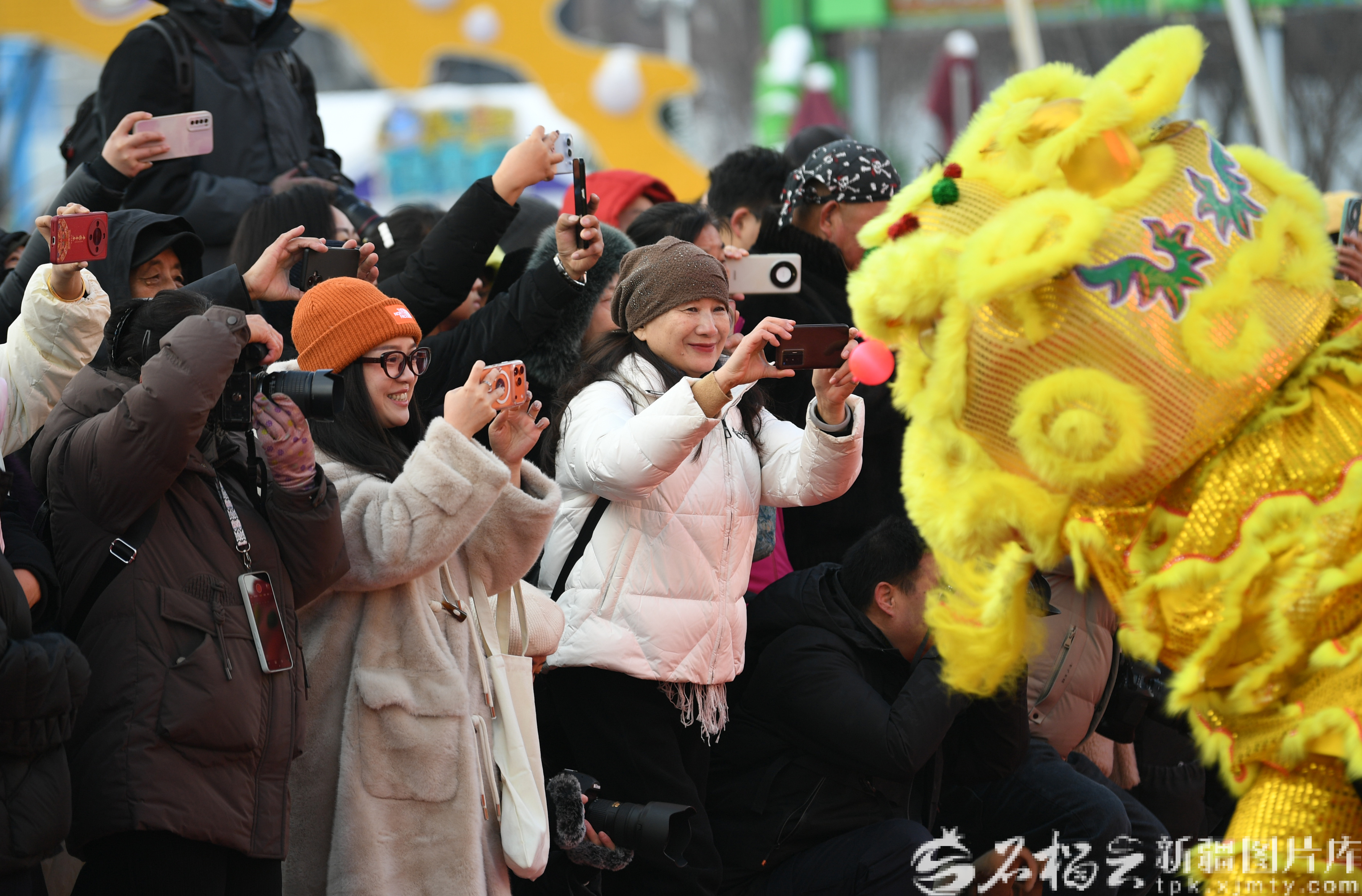12月14日,市民和游客紛紛拿出手機(jī)拍攝精彩的社火表演。