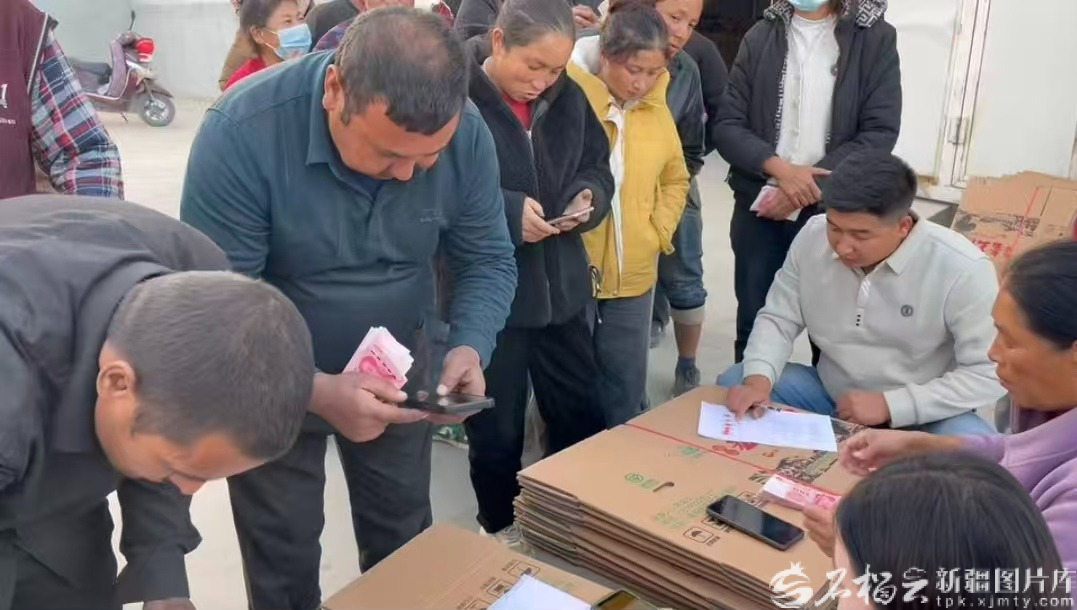 12月12日,墨玉縣農(nóng)業(yè)產(chǎn)業(yè)園內(nèi),在日光大棚建設(shè)工地打工的當(dāng)?shù)剞r(nóng)民,正在領(lǐng)工資。閆永艾琳攝
