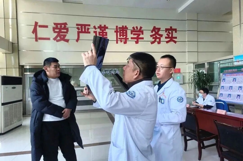 活動現(xiàn)場,沈陽援疆醫(yī)療專家查看患者的x光片。塔城市人民醫(yī)院供圖