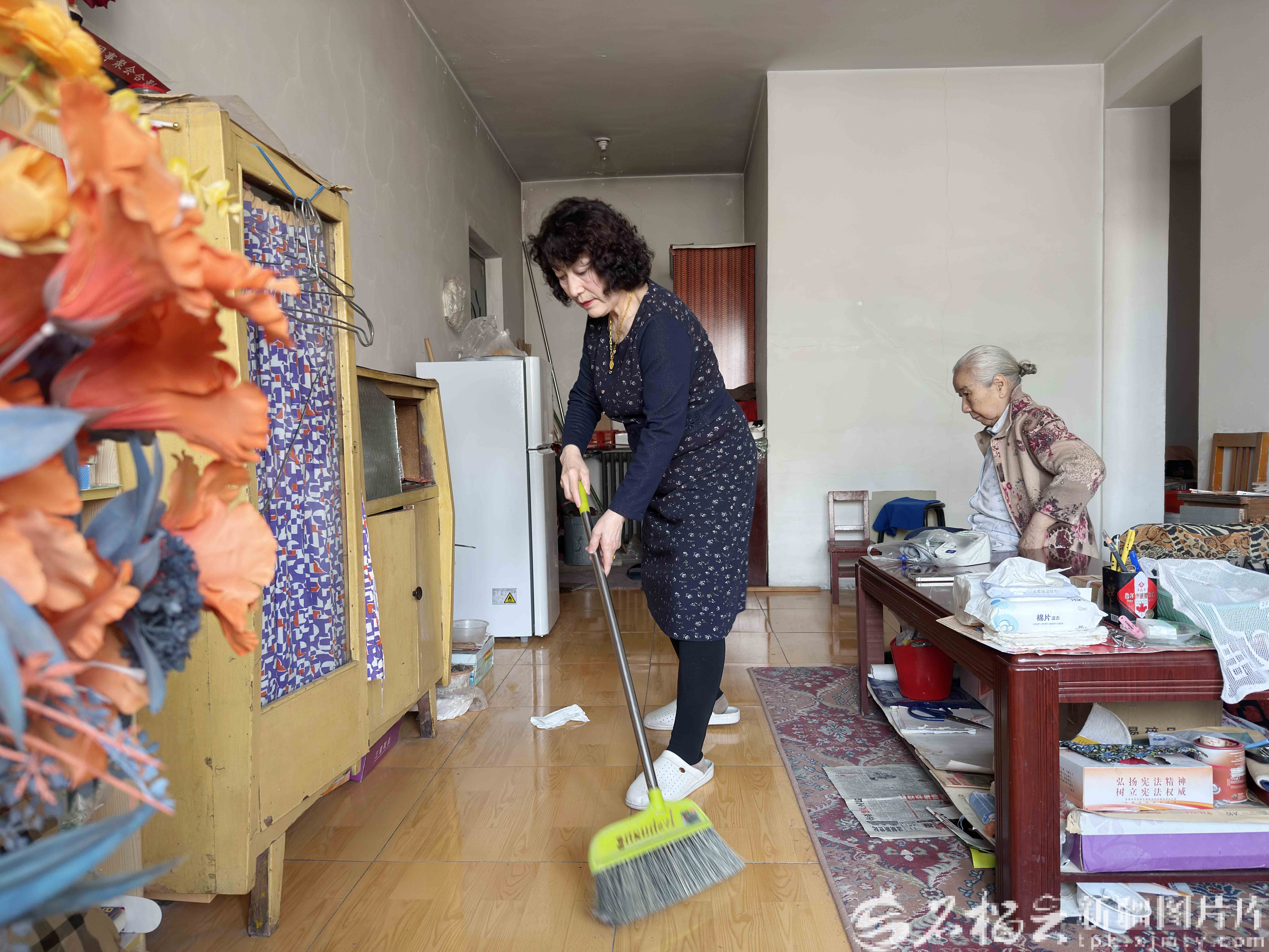 2月15日 ,在烏魯木齊市天山區(qū)二道橋街道二道橋社區(qū)巴里坤小區(qū)馬志林家中,熱伊汗·拍合熱?。ㄓ遥┰趲屠先耸帐胺课?。