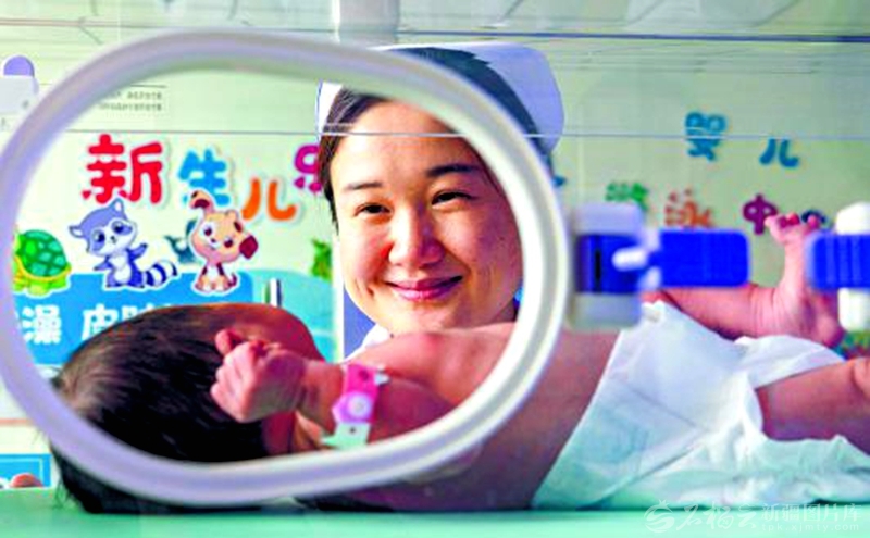 2月20日,烏魯木齊市米東區(qū)中醫(yī)醫(yī)院護(hù)士照看新生兒。 孫振嵩攝