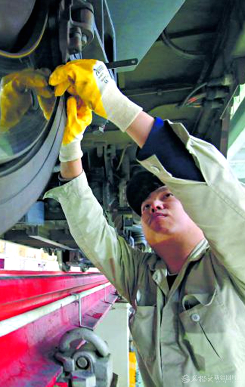 2月20日,中國(guó)鐵路烏魯木齊局集團(tuán)有限公司烏魯木齊車輛段動(dòng)車片區(qū),機(jī)械師檢修車輛,保障旅客安全出行。 鄭敏攝