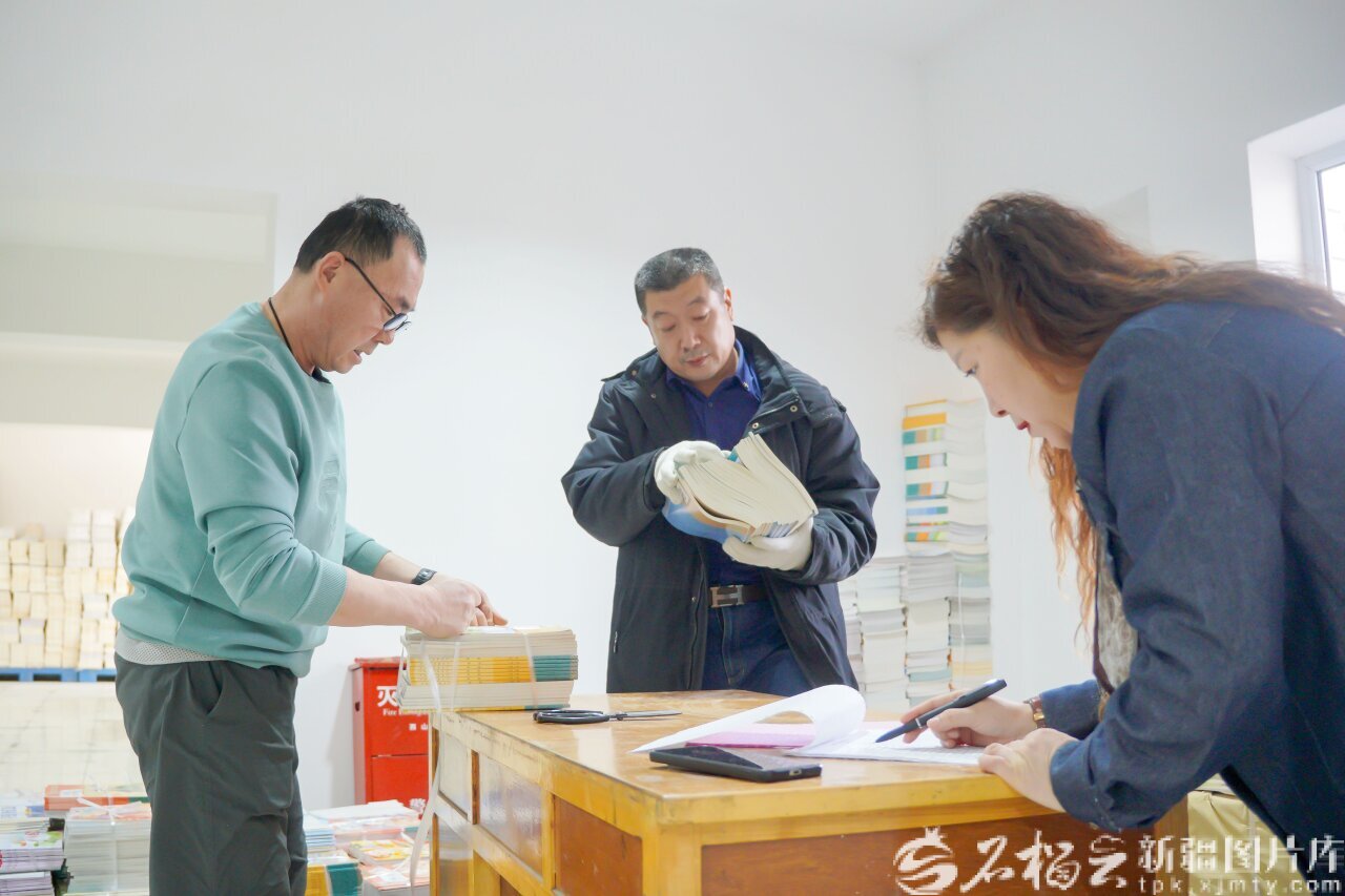 2月24日,昌吉新華書店配送中心,工作人員正在分發(fā)教材,全力保障“課前到書,人手一冊(cè)” 。何龍攝
