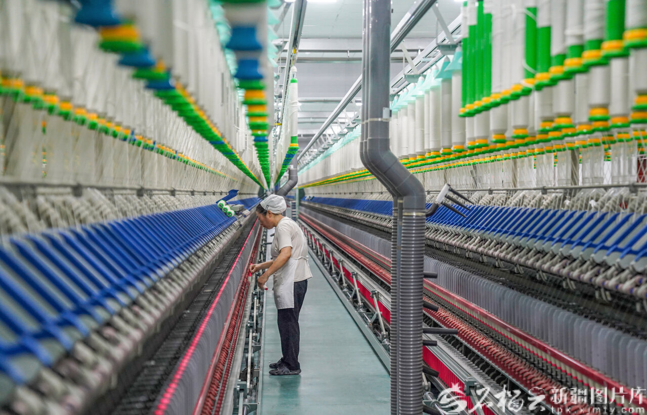 2月24日,春節(jié)假期后首個(gè)工作日,旭恒佳(烏蘇)紡織有限公司員工在紡織車間趕制訂單,沖刺新年“開門紅”。李仁錫攝