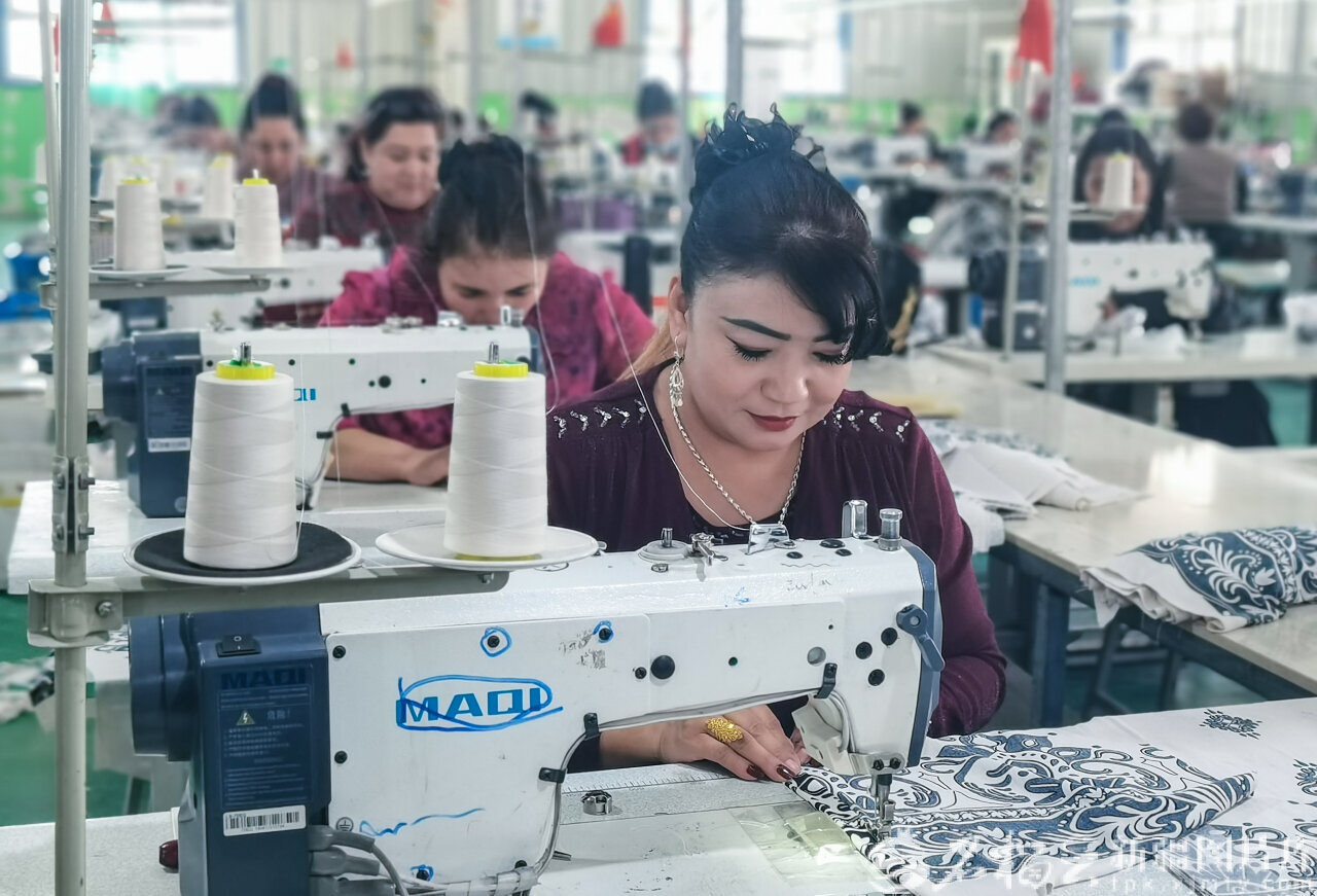 2月24日,位于澤普縣的新疆聚盈服飾有限責(zé)任公司加工車間,員工正在趕制來自疆內(nèi)外的女士襯衫訂單產(chǎn)品。王華賢攝