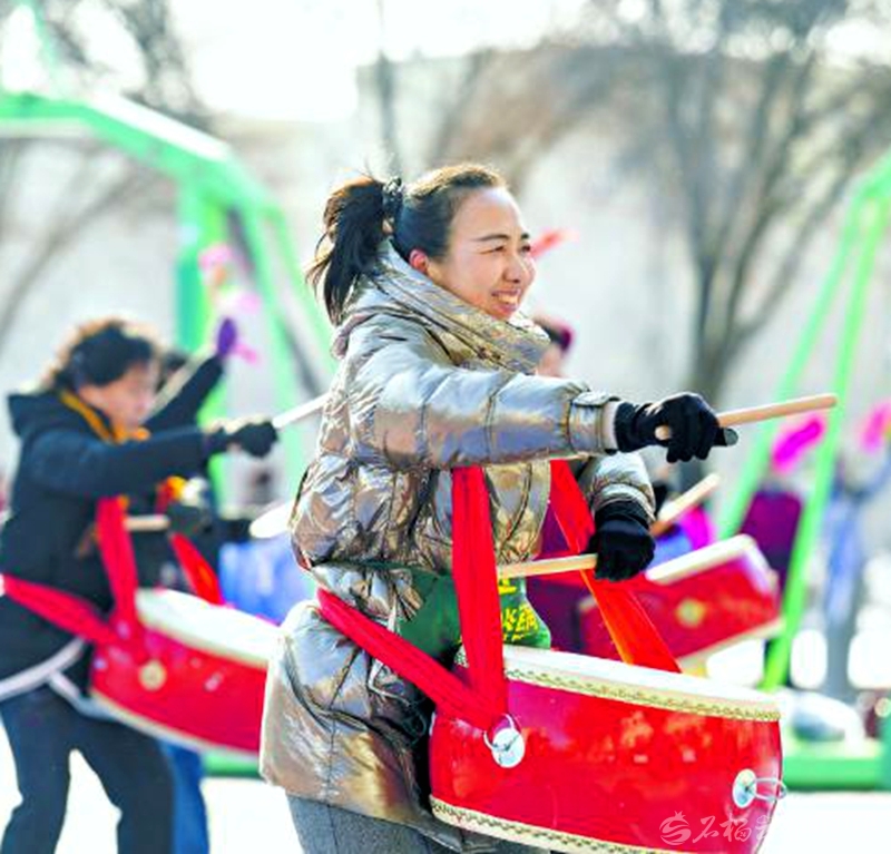 2月25日,昌吉市延安北路街道社火表演隊(duì)的演員排練社火,迎接即將到來的元宵佳節(jié)。何龍攝