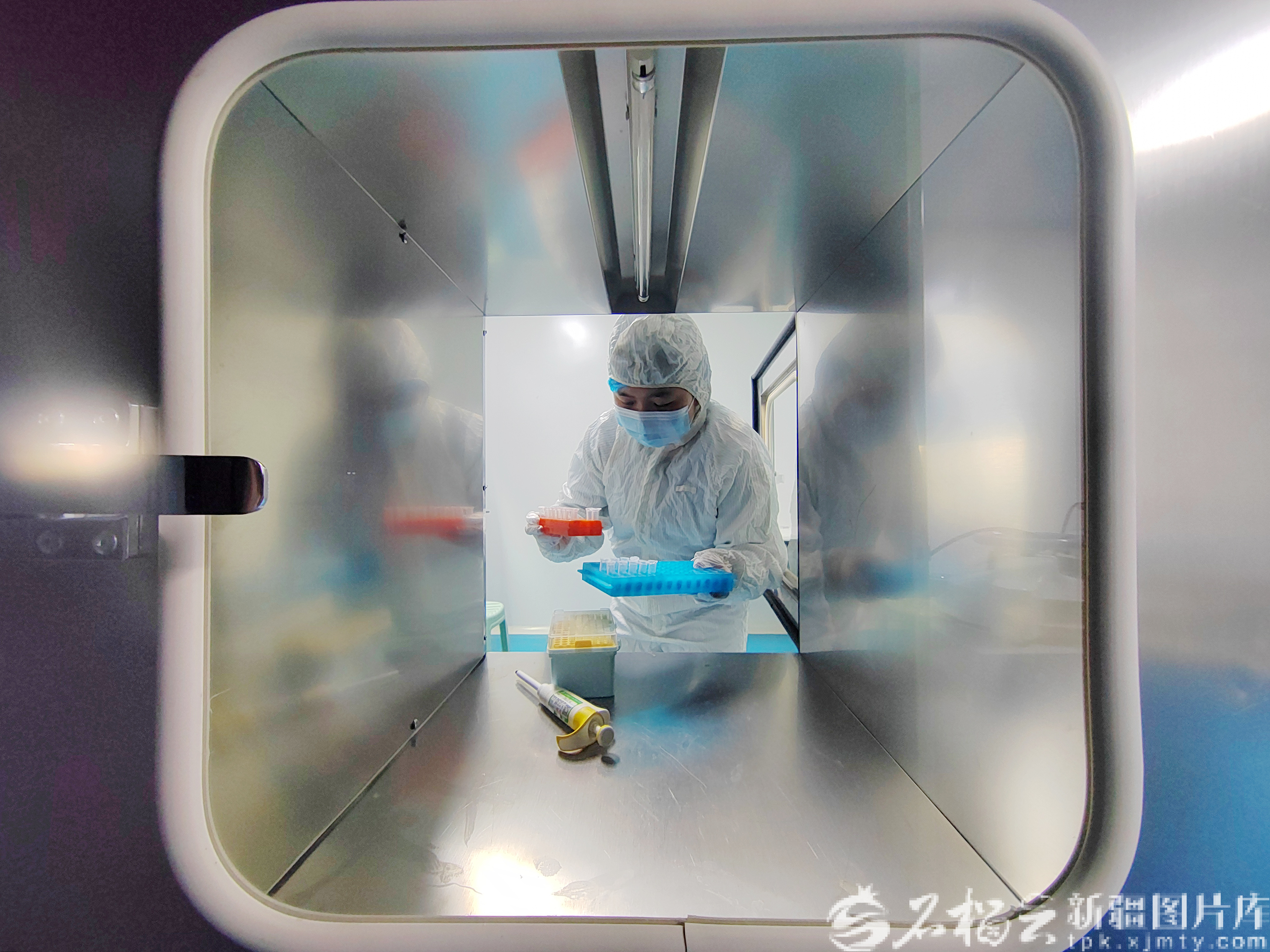 2月27日,工作人員在潔凈室內(nèi)檢測樣本。