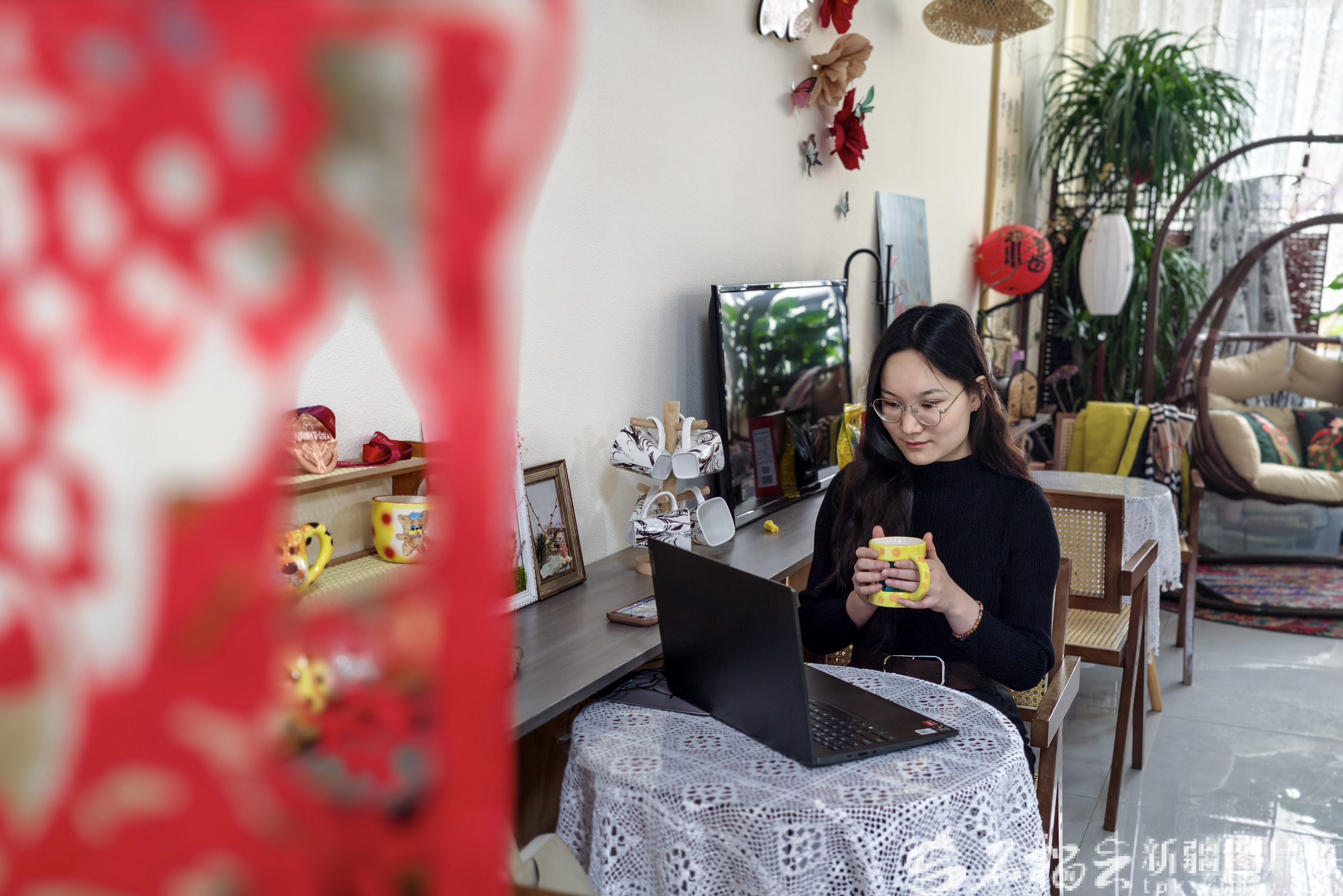 2月27日,一位自由職業(yè)者在烏魯木齊市天山區(qū)賽馬場街道賽馬場西社區(qū)鄰里中心設立的休閑區(qū)工作。