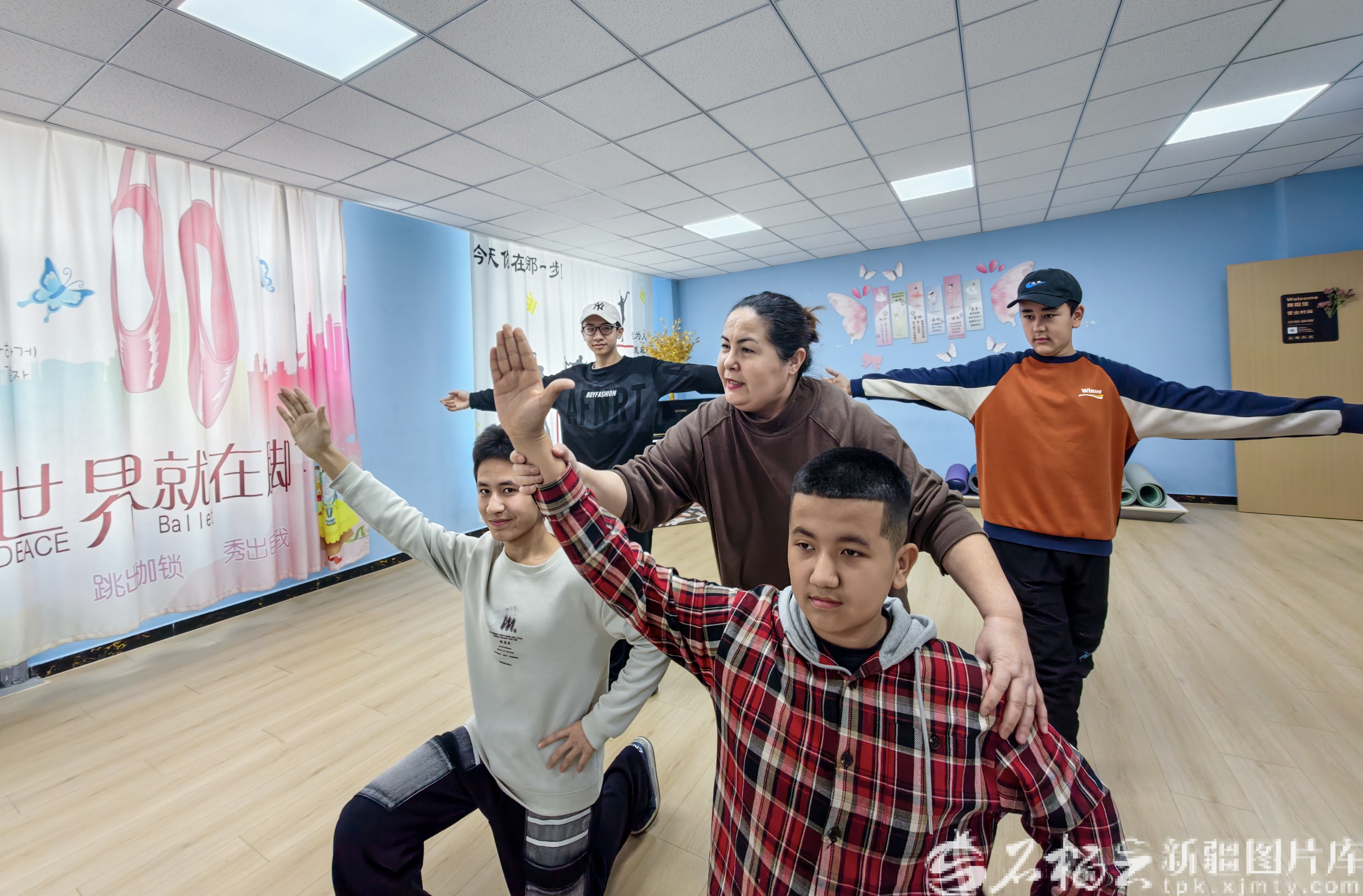 2月27日,舞蹈老師在烏魯木齊市天山區(qū)賽馬場街道賽馬場西社區(qū)鄰里中心給學生編排舞蹈。