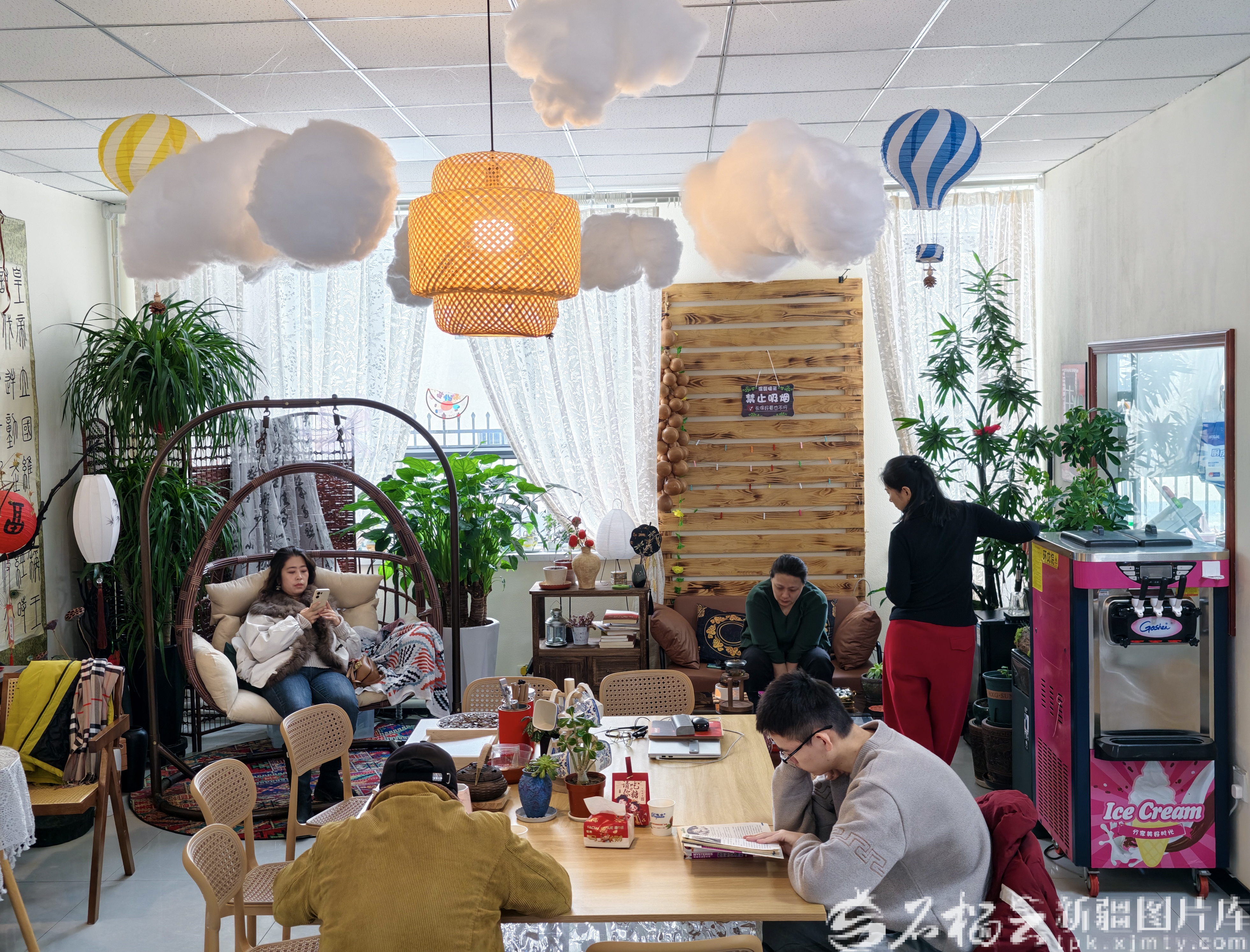 2月27日,居民在烏魯木齊市天山區(qū)賽馬場街道賽馬場西社區(qū)鄰里中心設立的咖啡廳休息。