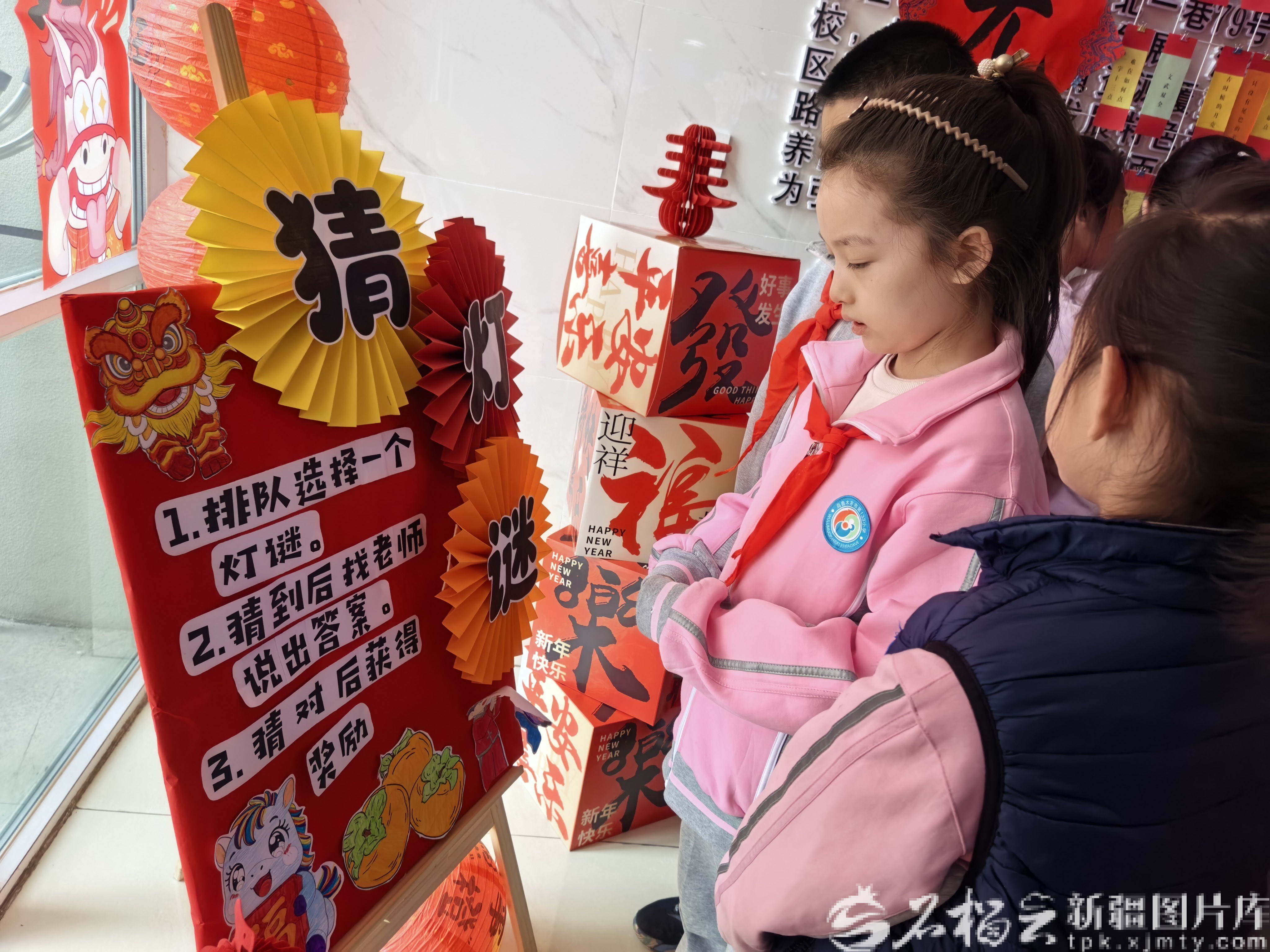 在烏魯木齊市第133小學(xué),“金馬迎春猜燈謎”主題元宵活動(dòng)火熱開展。學(xué)校燈謎設(shè)計(jì)既貼合馬年元宵主題,又融入校園特色與學(xué)科知識:“馬到成功(打一成語)”“春風(fēng)又綠江南岸(打一學(xué)科名)”,還有結(jié)合新疆地域特色的“天山腳下瓜果香(打一新疆特產(chǎn))”,涵蓋語文、數(shù)學(xué)、歷史、民俗等多個(gè)領(lǐng)域。