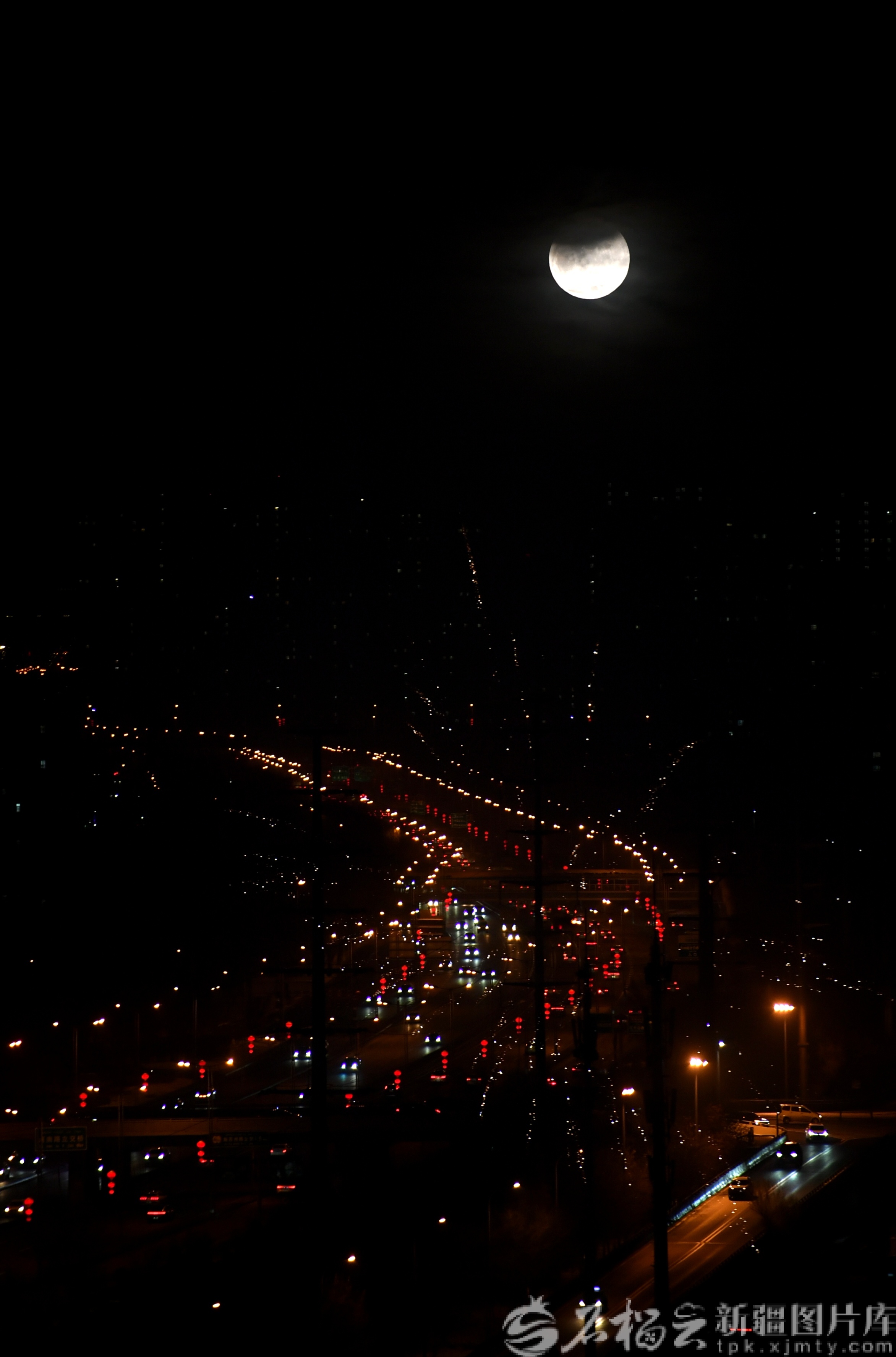 3月3日,月全食沖破云層亮相庫(kù)爾勒市夜空。巴音郭楞融媒體中心 薛兵攝