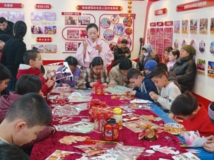 活動(dòng)室另一側(cè),孩子們認(rèn)真制作民族團(tuán)結(jié)主題花燈,16歲的艾尼帕·阿吉艾力格外開心。去年她因病休學(xué),在社區(qū)和學(xué)校的關(guān)懷下順利康復(fù),即將重返校園,能和伙伴們共度佳節(jié),讓她倍感溫暖。