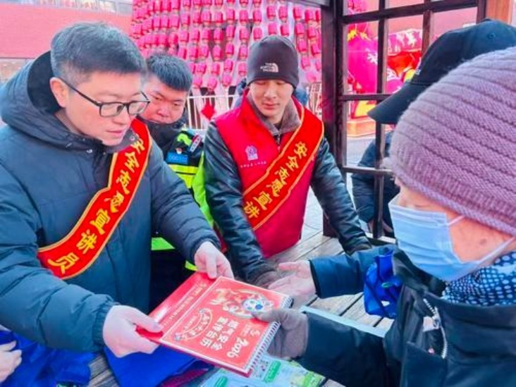 2月6日,社區(qū)便民大集上,安全志愿宣講員為居民準(zhǔn)備“安全福袋”,在濃濃年味中普及節(jié)日安全知識(shí),把平安祝福送到大家手中。長安社區(qū)供圖