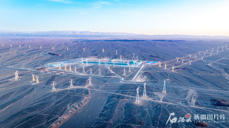 哈密—重慶±800千伏特高壓直流輸電工程新疆送端站——巴里坤換流站航拍圖。馮洋攝
