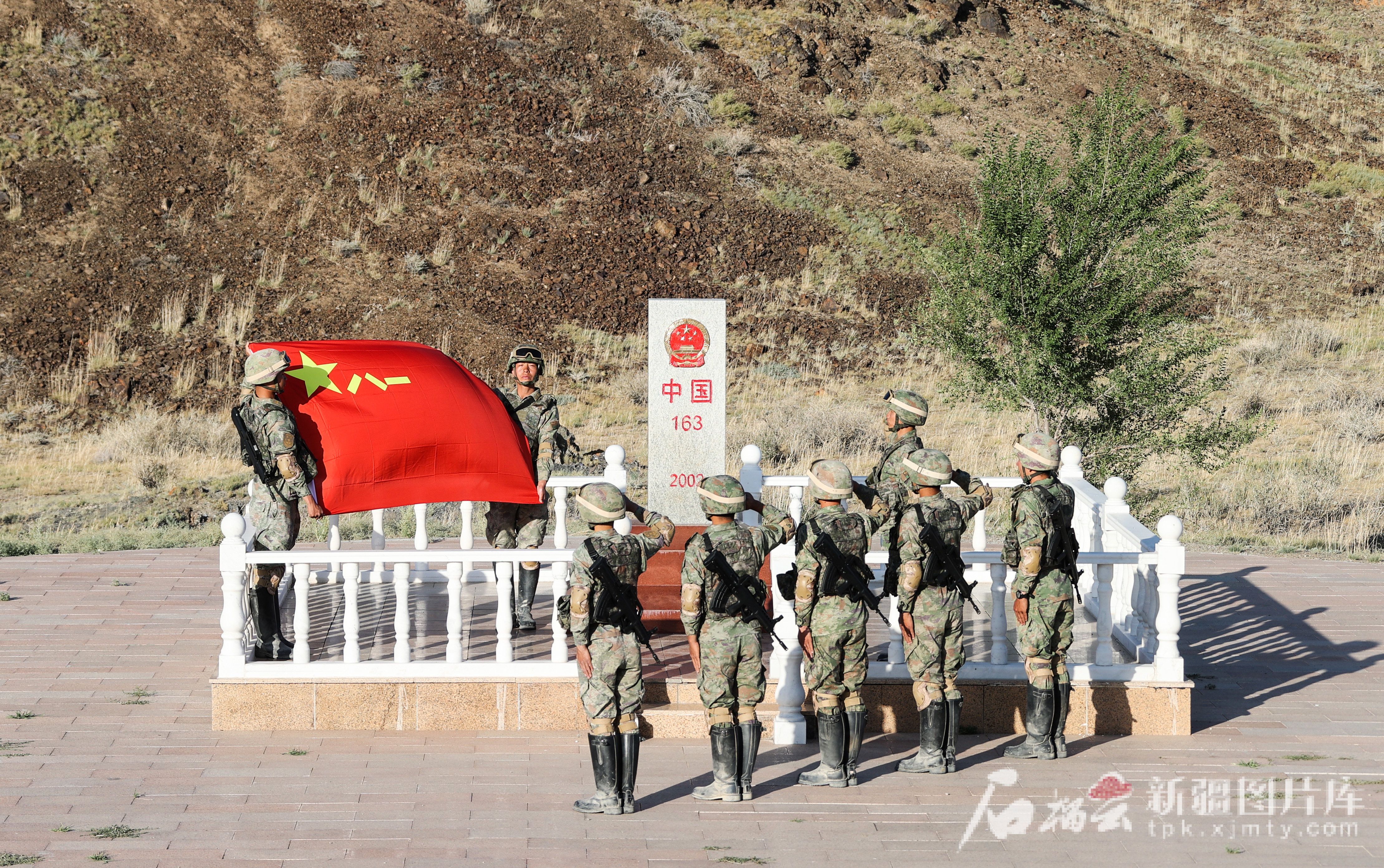 昌吉軍分區(qū)某邊防連執(zhí)勤小分隊面對祖國界碑,官兵們昂首挺胸,右手高舉,莊嚴(yán)宣誓:“為了守護(hù)祖國的領(lǐng)土完整,我們甘愿像先輩一樣,奉獻(xiàn)自己的一切!”熱血涌動,官兵們的響亮誓言,在雪山群峰之間久久回蕩。